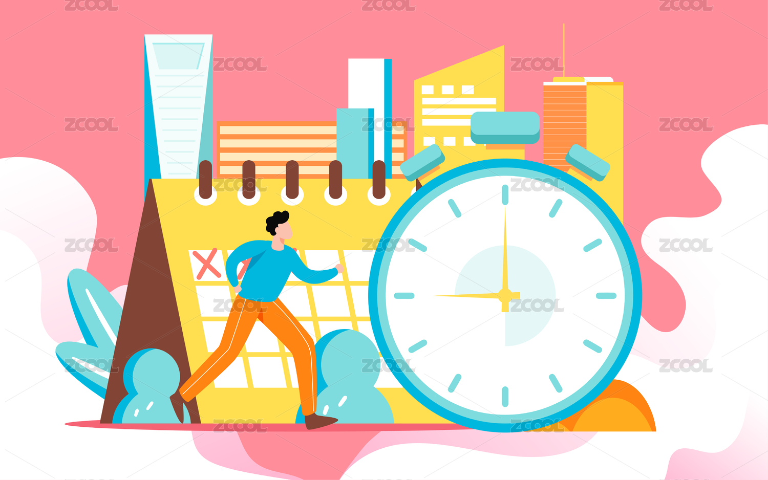 时间工作效率加班招聘活动商务办公扁平矢量插画
