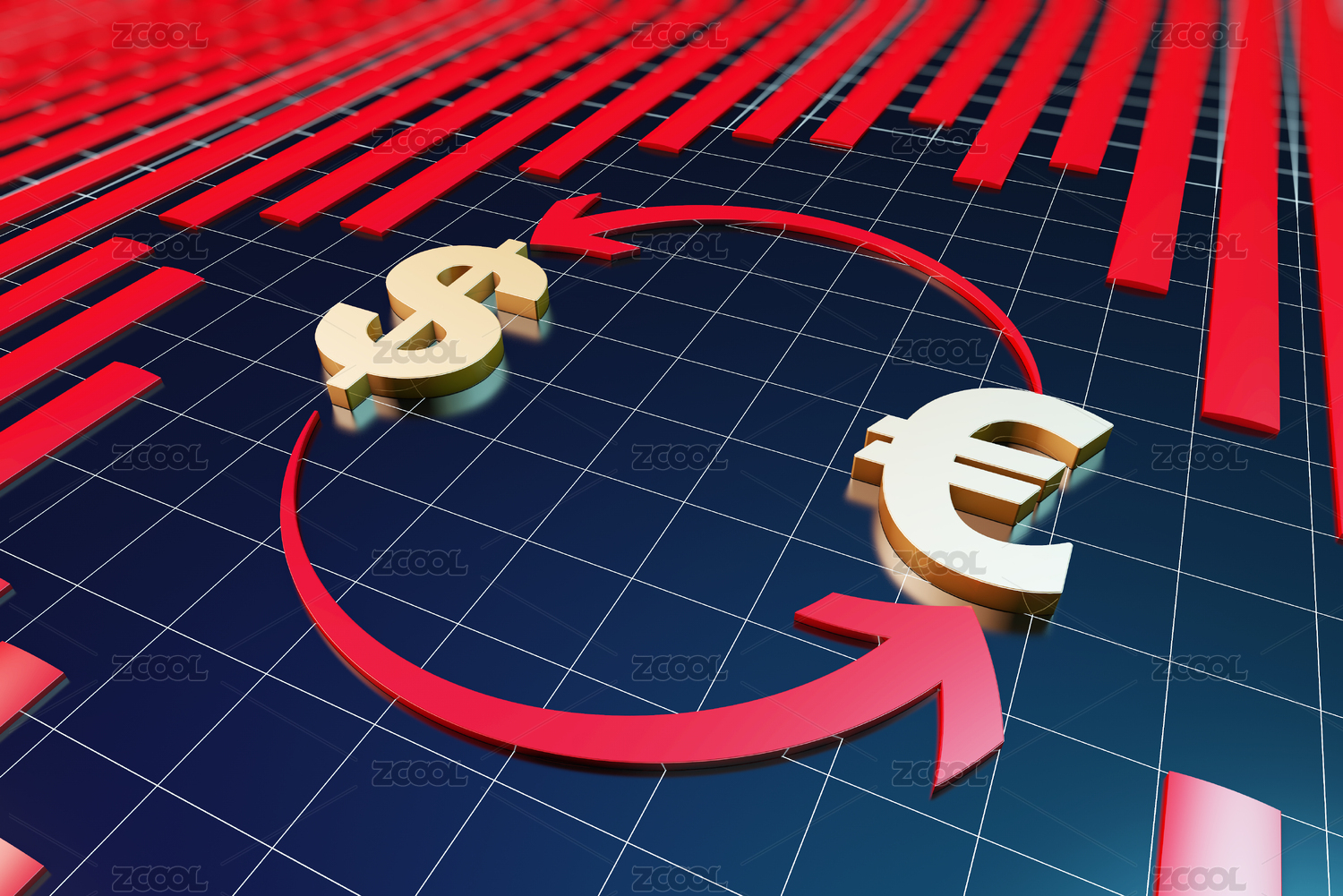 美元欧元符号与环形箭头,交换与兑换