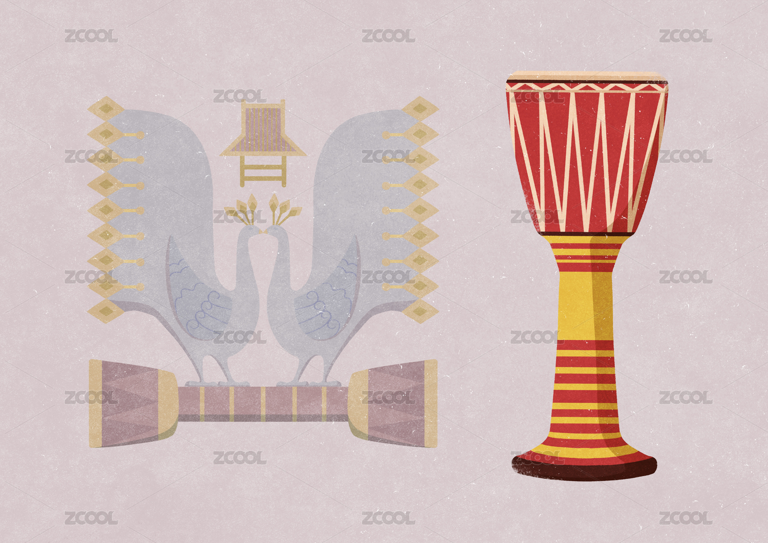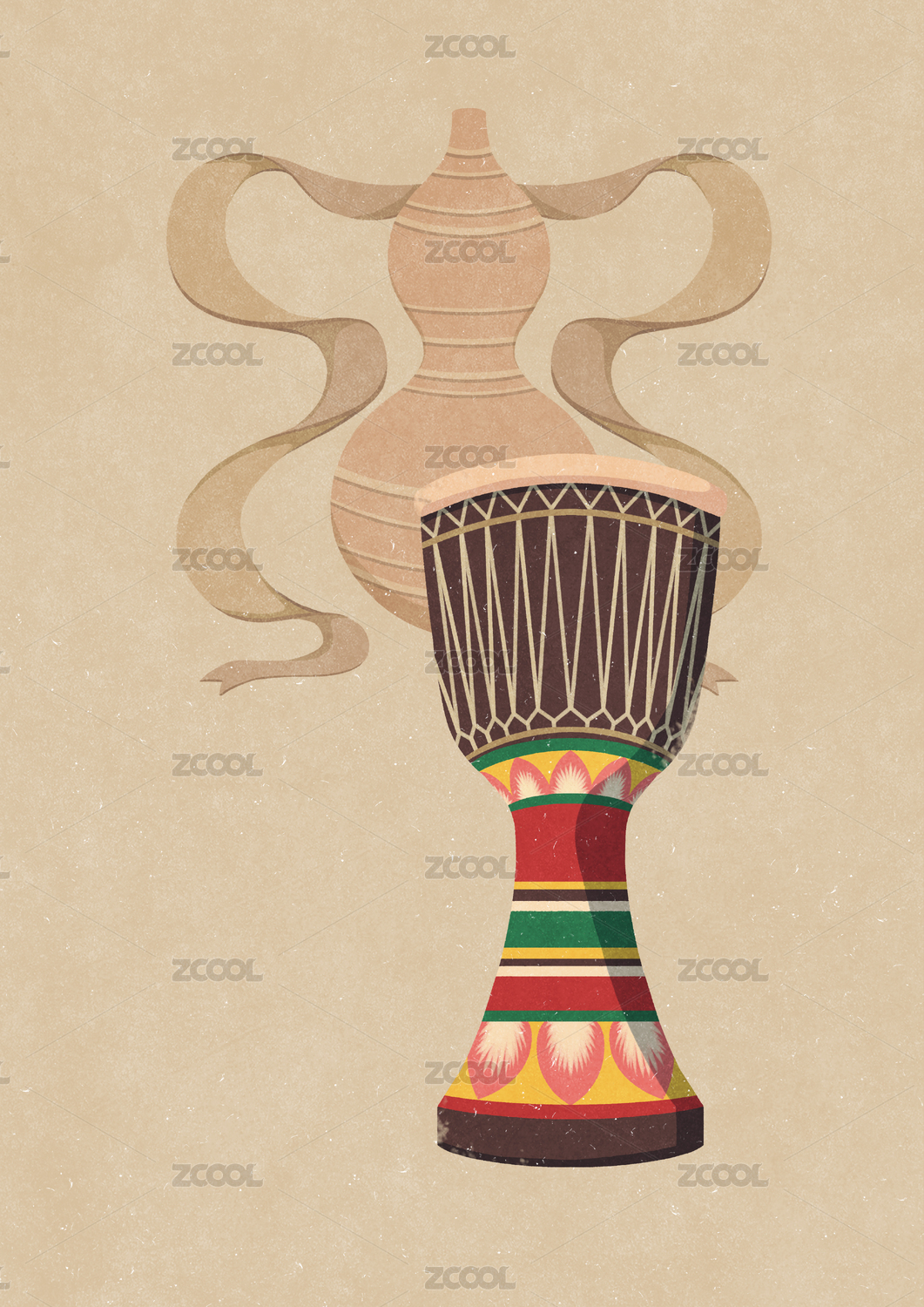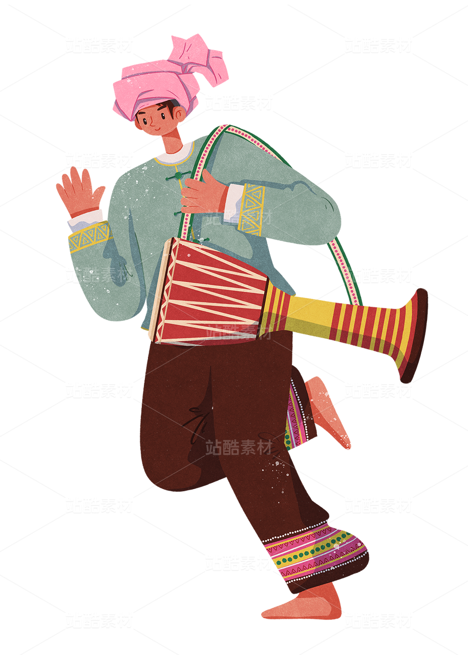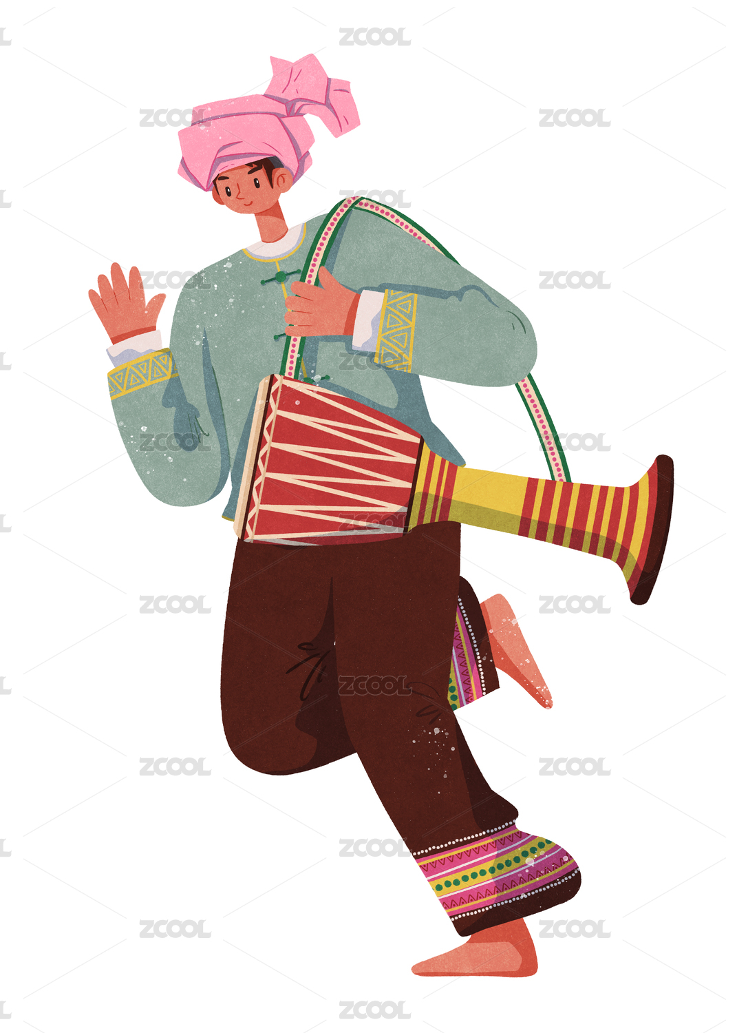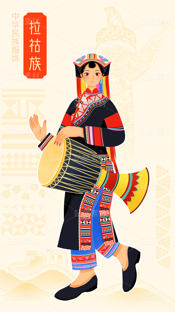 中国五十六个民族拉祜族象脚鼓少女盛装女性服饰插画
