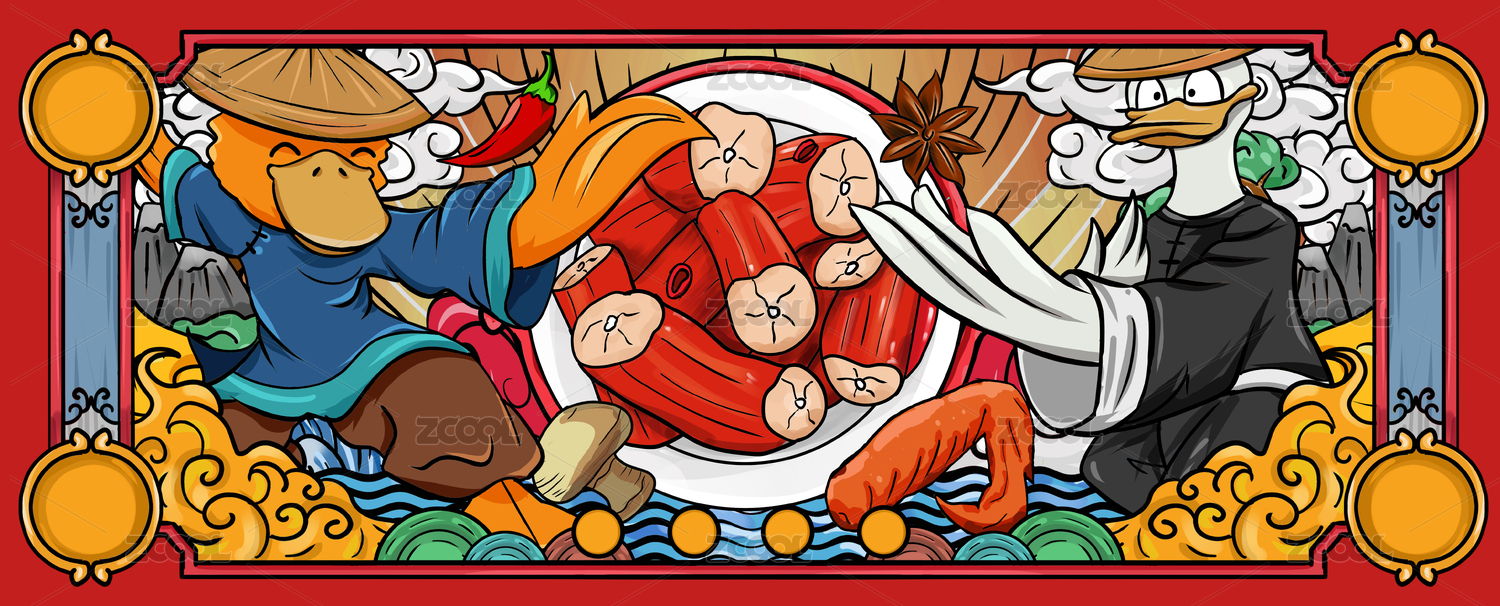 原创手绘卡通美味的鸭脖卤味插画海报素材