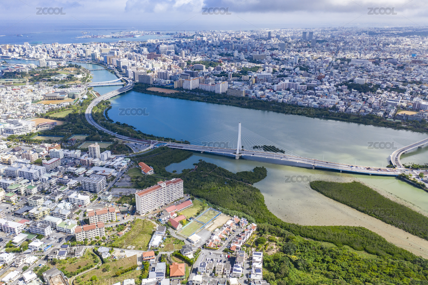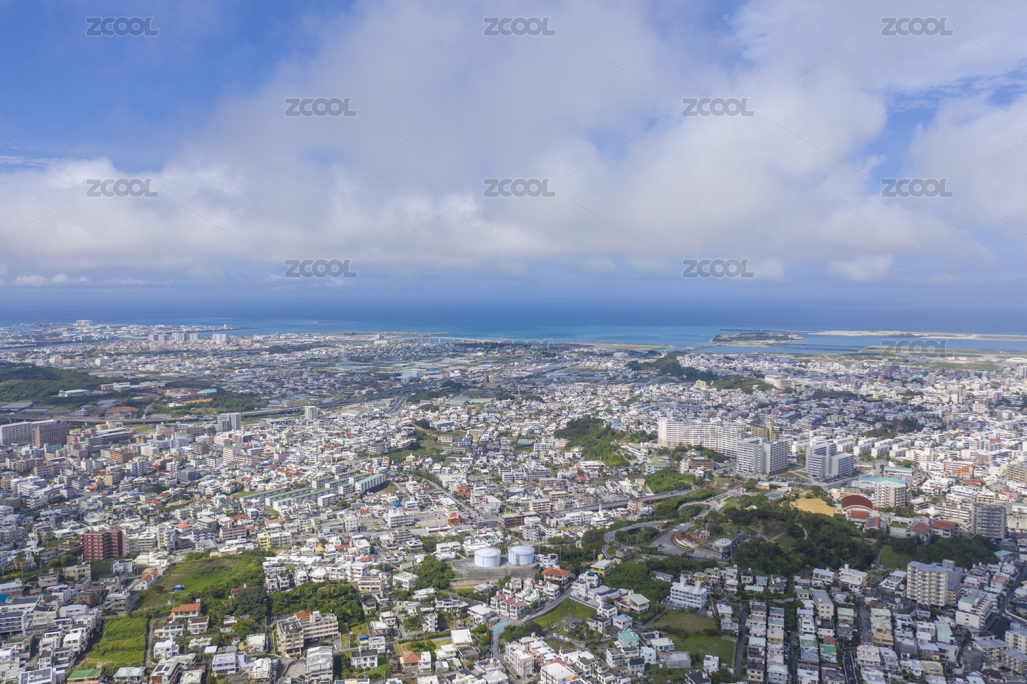 日本冲绳城市风光鸟瞰