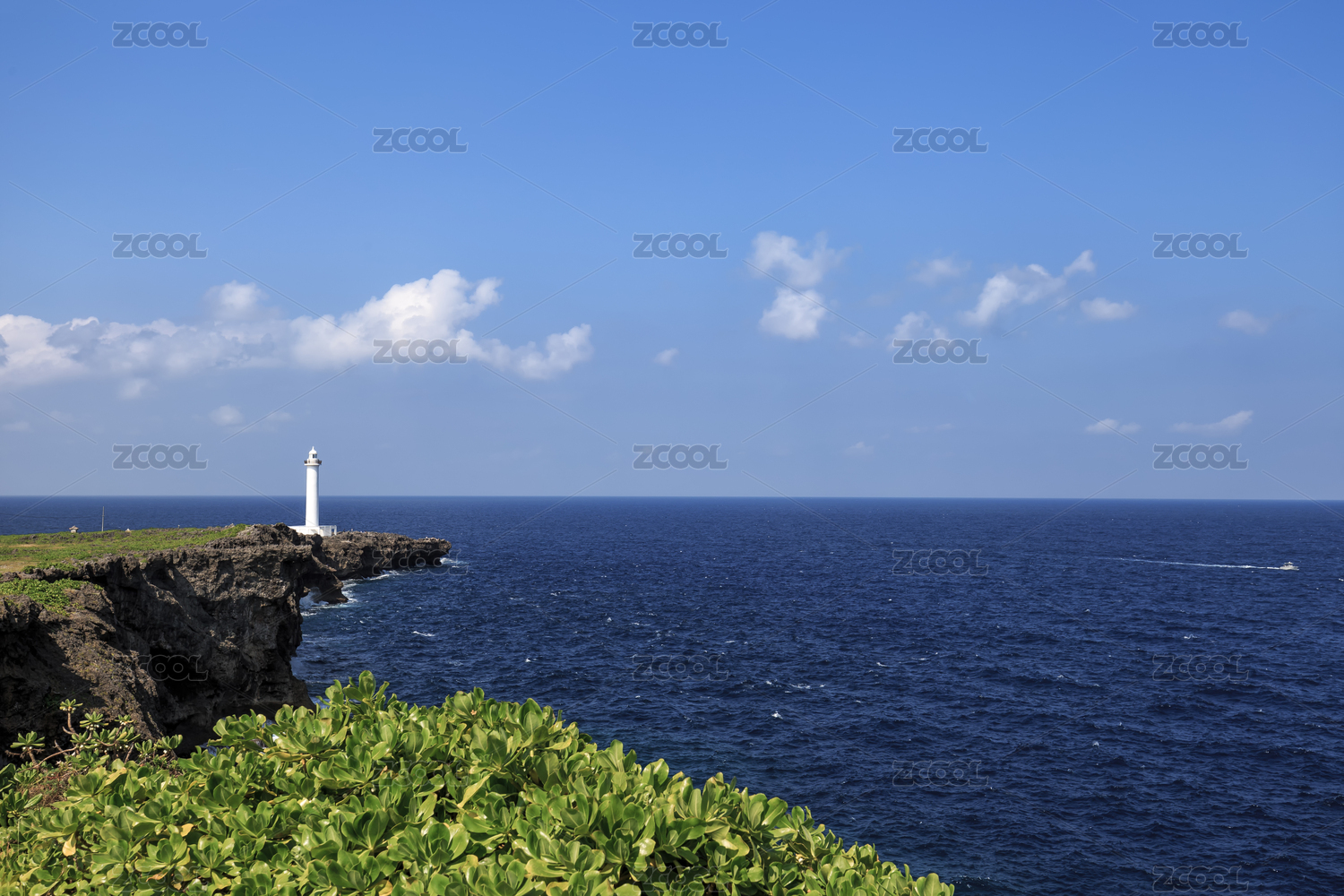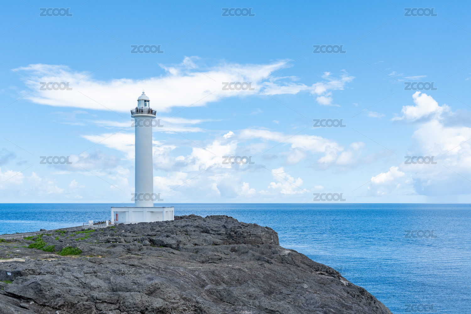 日本冲绳残波岬海边灯塔
