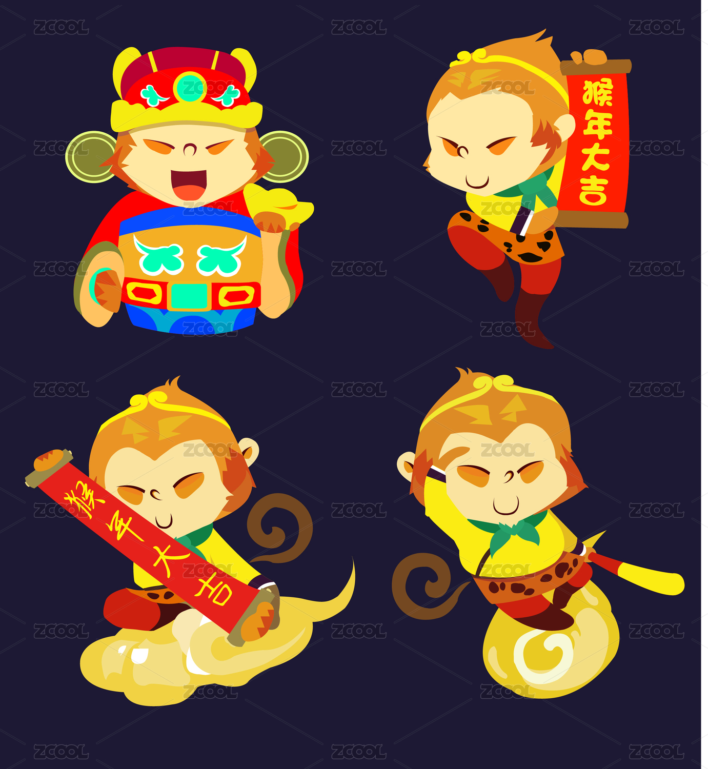 2016 猴年 新年 拜年 孙悟空 猴子 吉祥 吉祥物 插画