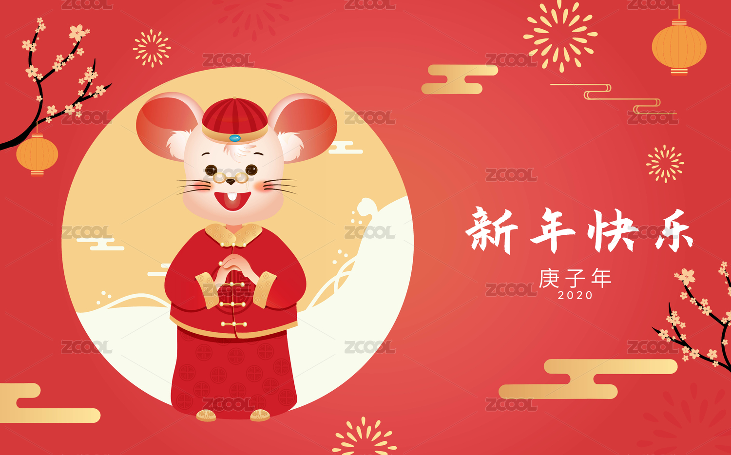 拜年的老鼠矢量插画 新年快乐 春节海报周边矢量插画