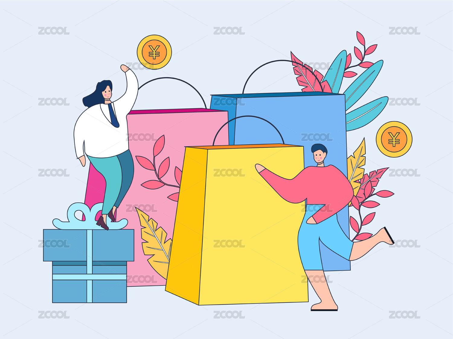 领取优惠券购物的人-带线条