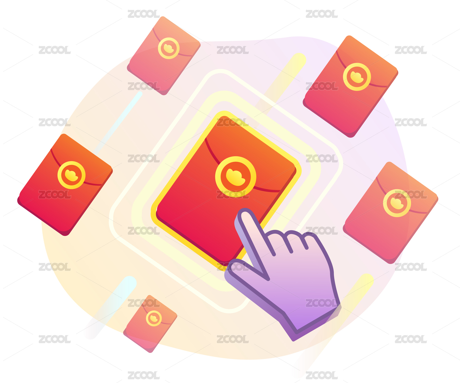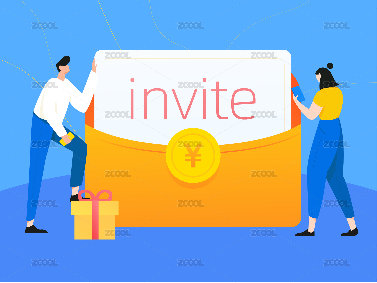 邀请好友领取红包矢量插画