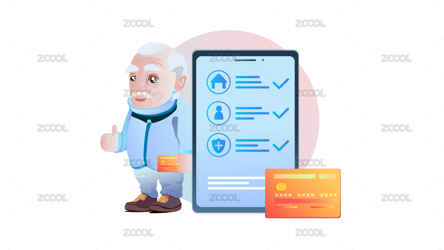 老人领取养老金的插画