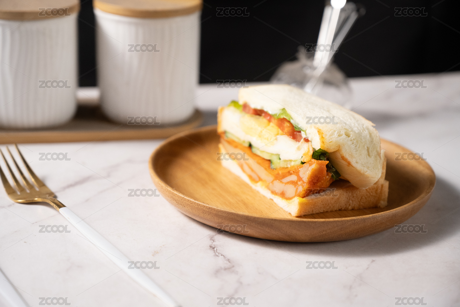 餐桌上的三文治
