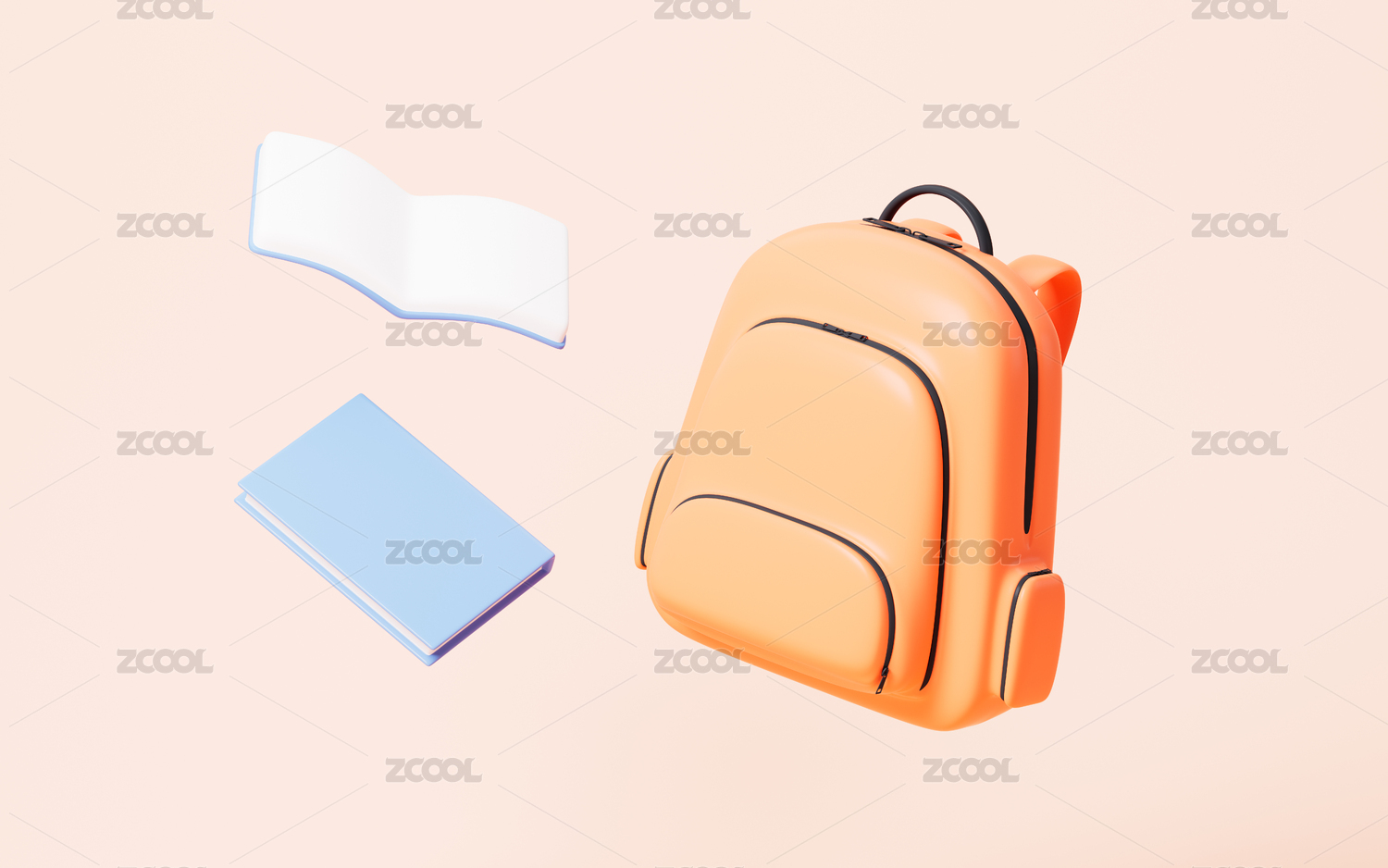 卡通书包和书本模型3D渲染