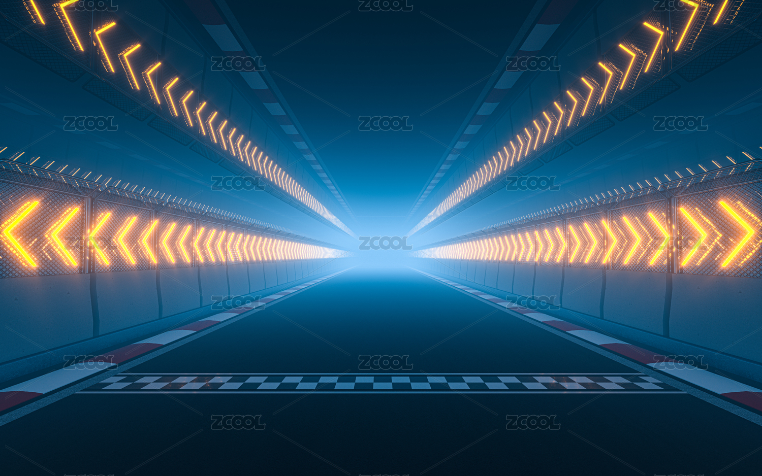 快速模糊赛道与箭头灯光夜晚背景