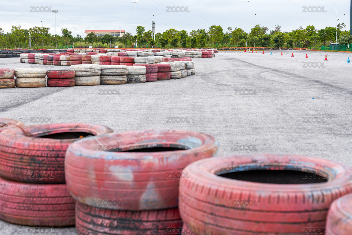 标注数字的红色塑胶跑道田径赛道