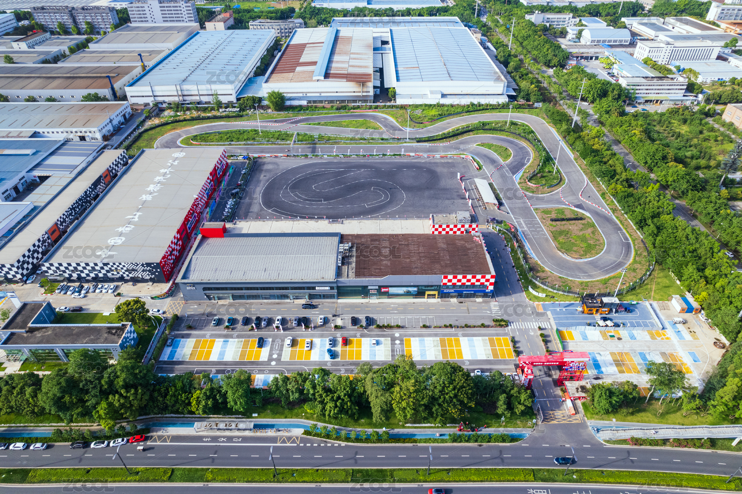 一条城市专业汽车赛道的航拍