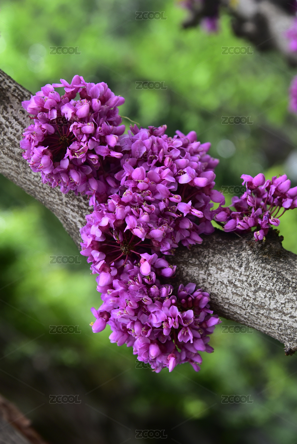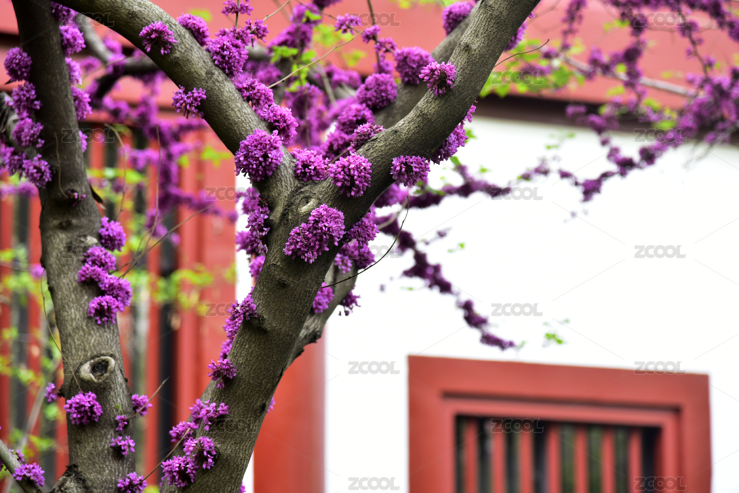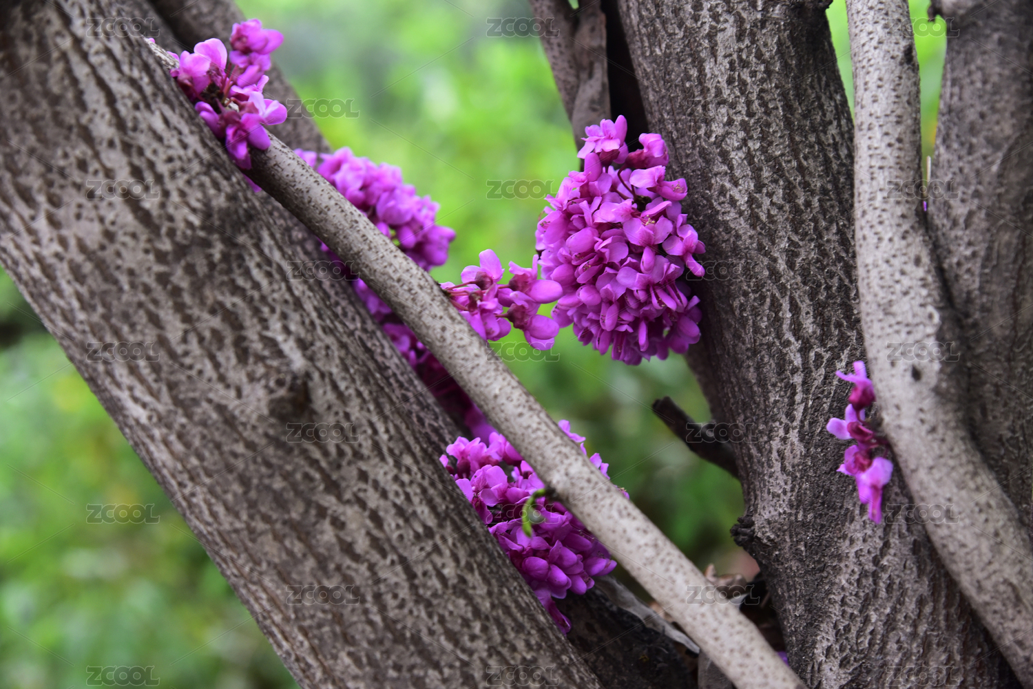 陕西西安大慈恩寺内春天树干上开花的紫荆花