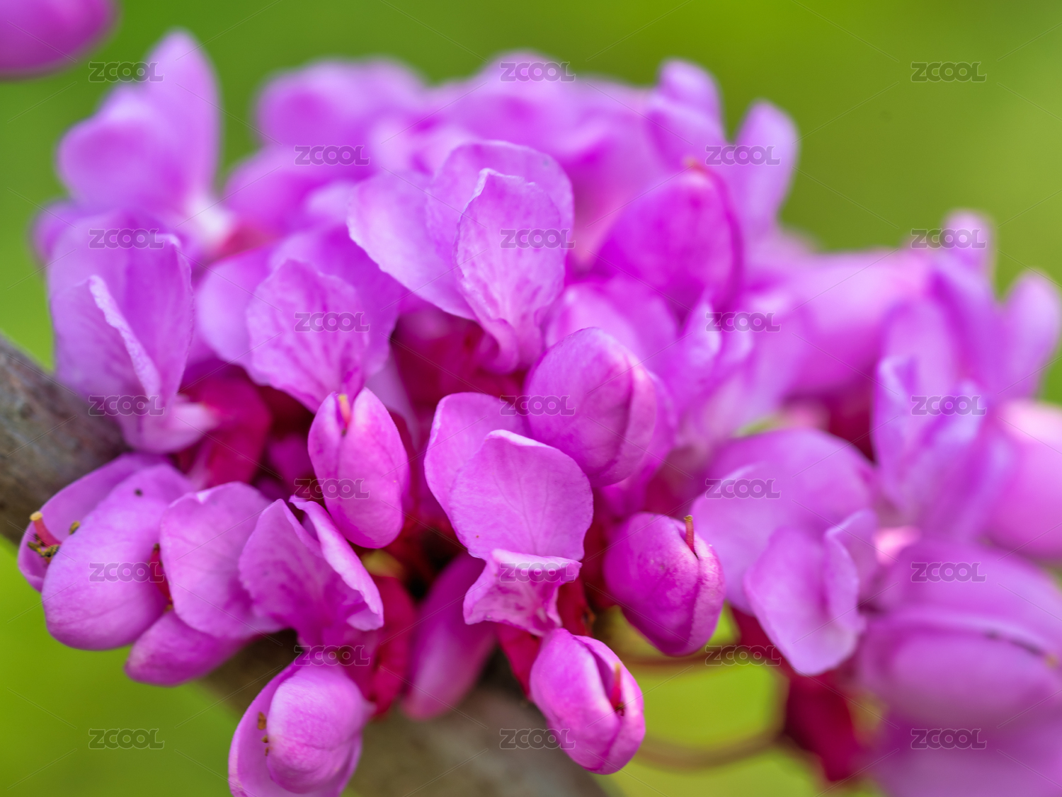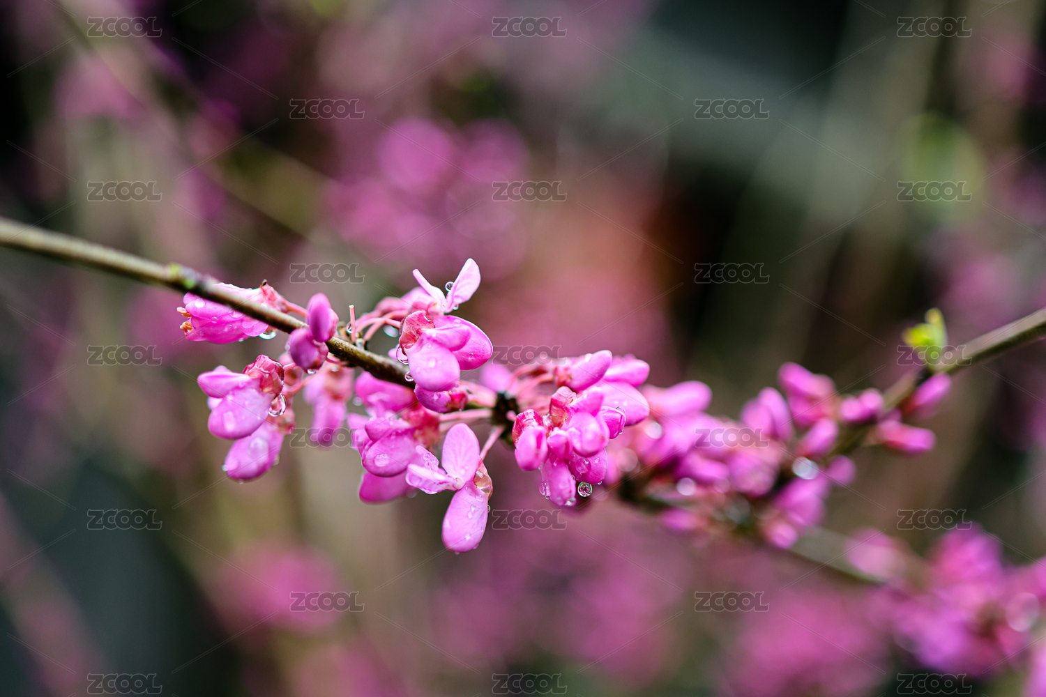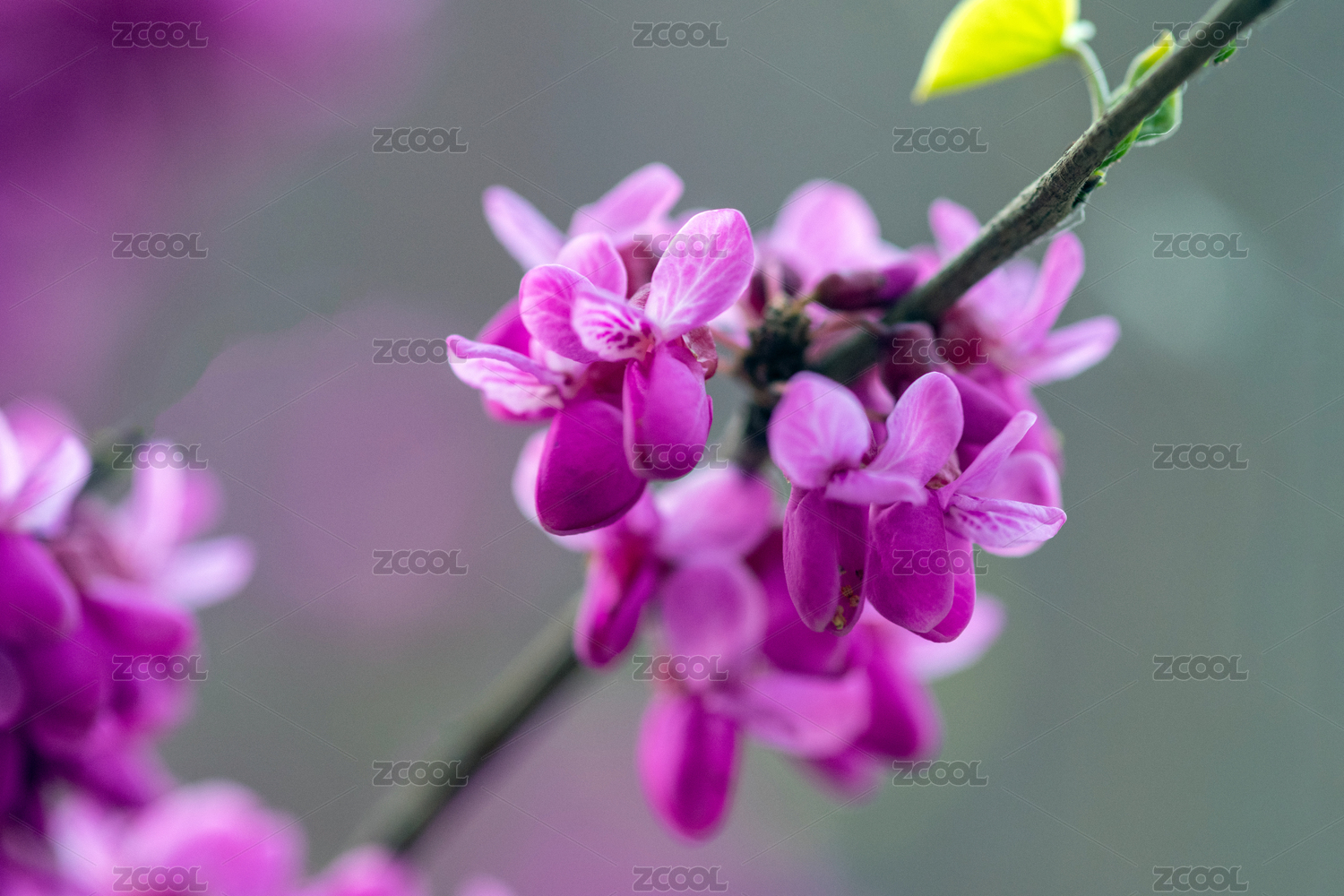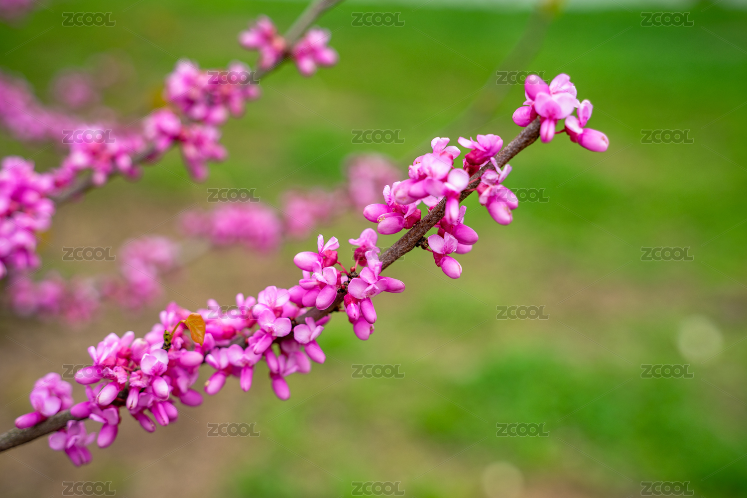 陕西西安大慈恩寺内春天树干上开花的紫荆花