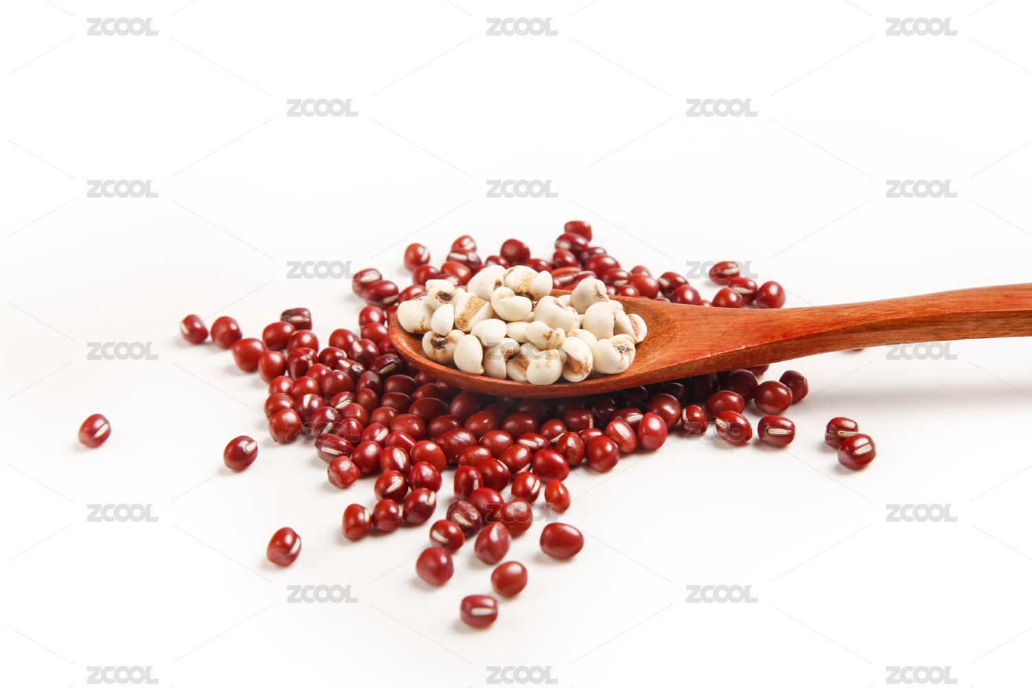木纹桌面上那陶瓷碟子里面的白色薏米