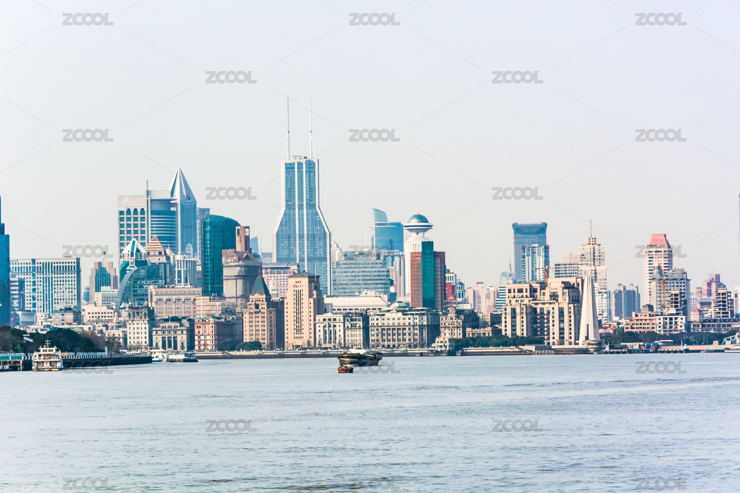 干净的空城市道路,并在一个阳光灿烂的日子现代建筑,上海,中国