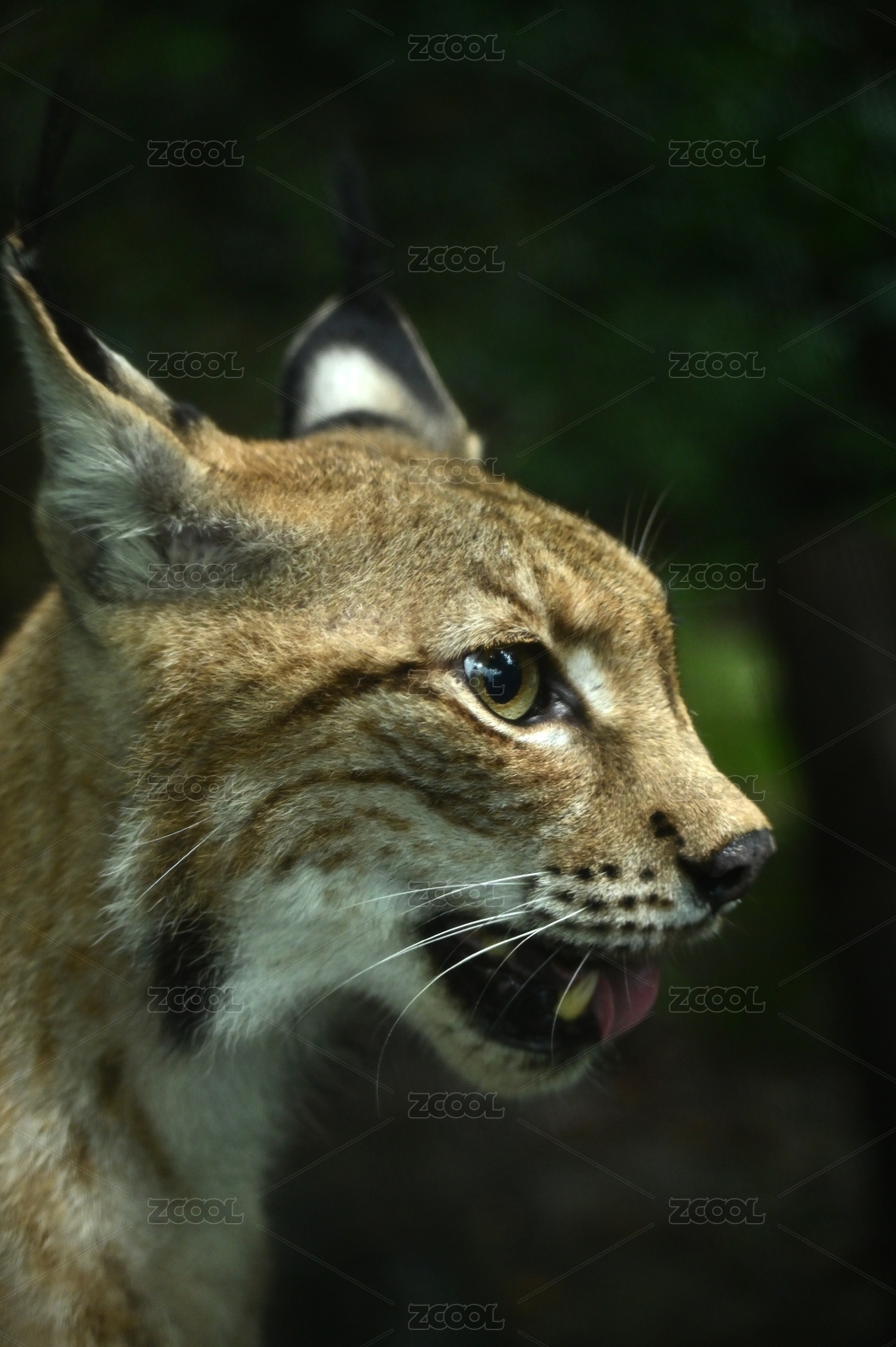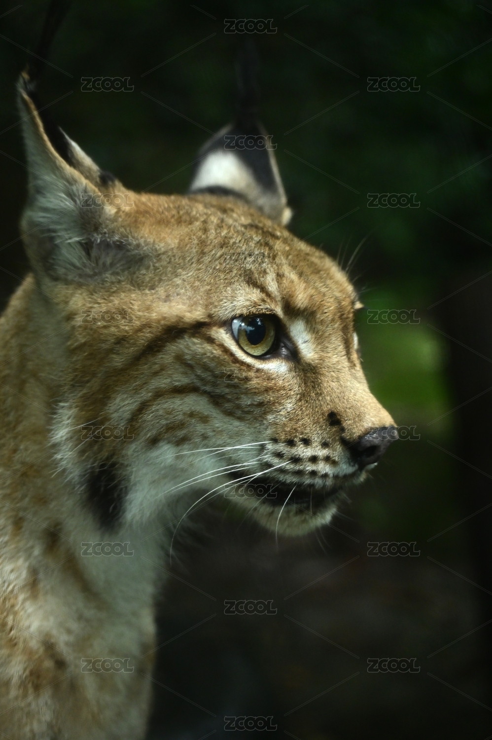 中国上海动物园一只猞猁的侧面肖像