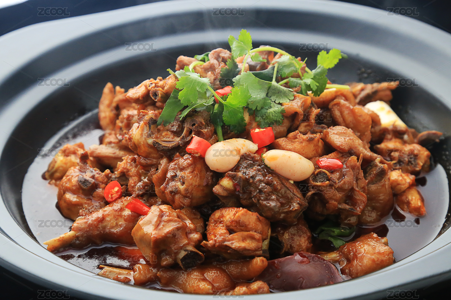 黑色砂锅里的松滋鸡特写