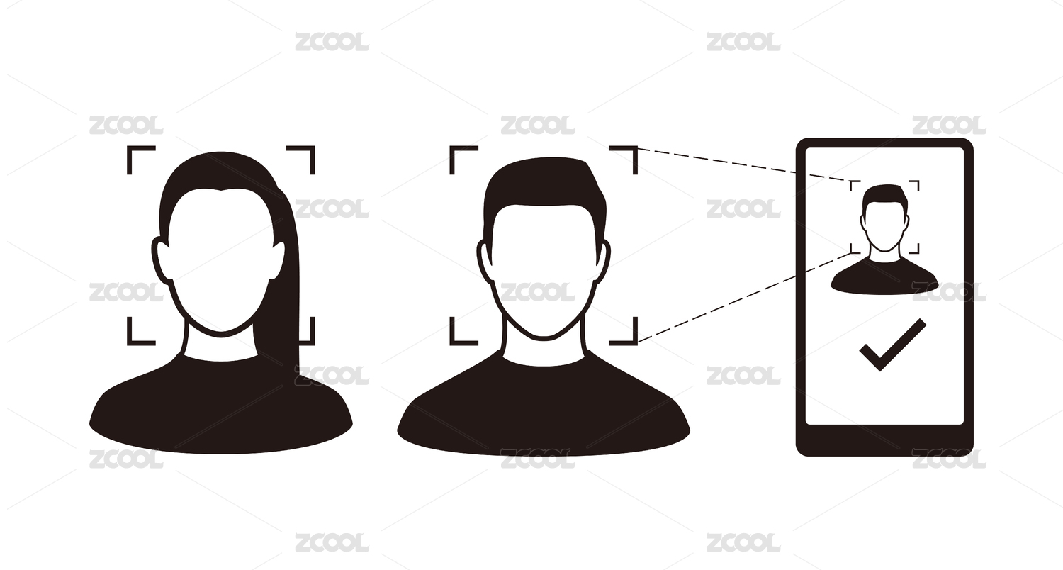 手机人脸识别系统概念图标生物识别验证