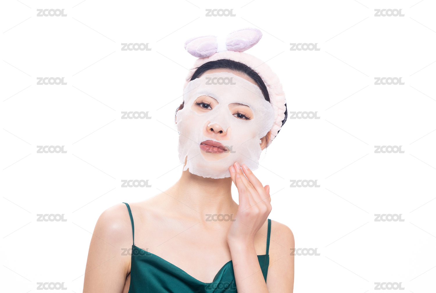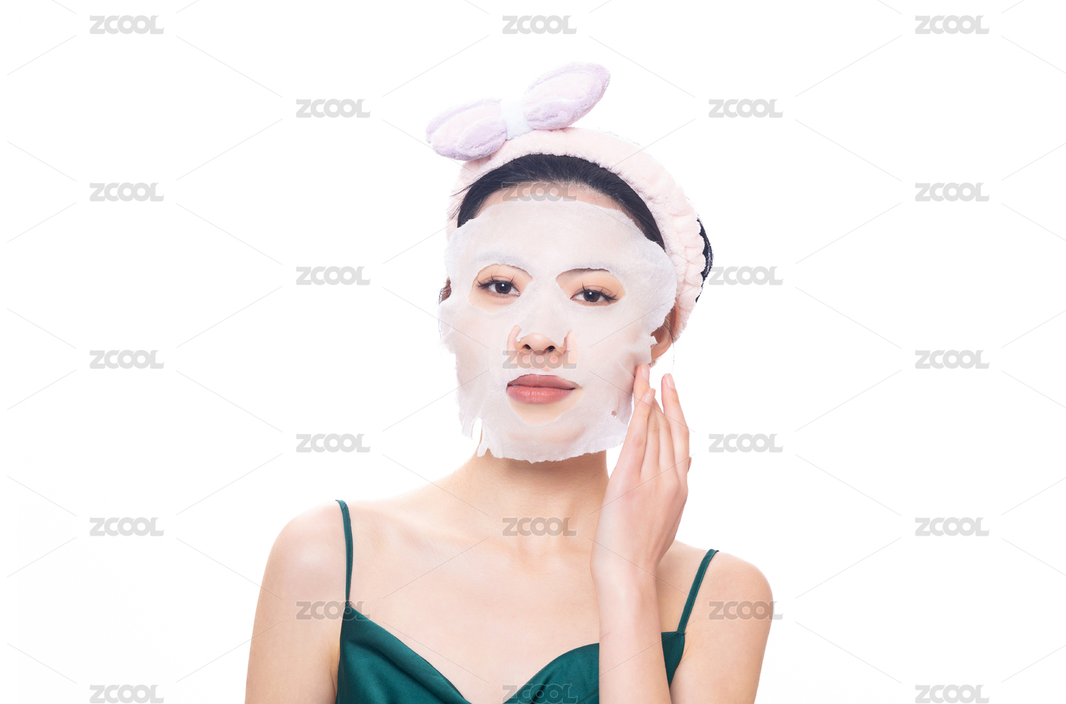 正在敷面膜的东方女性面部特写