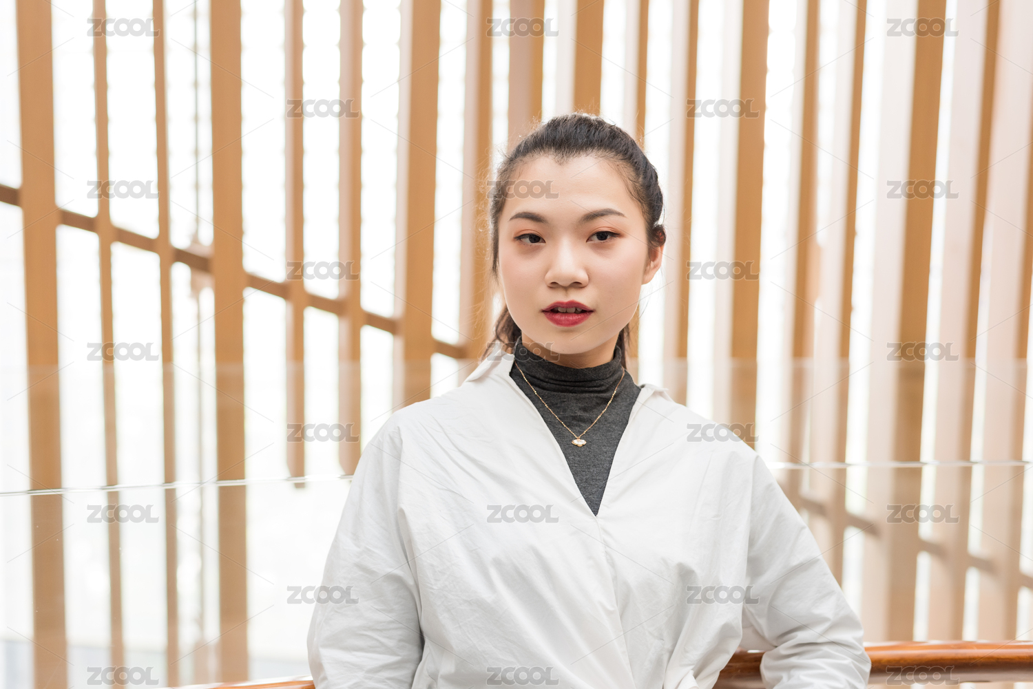 年轻女生站立着的正脸面部表情