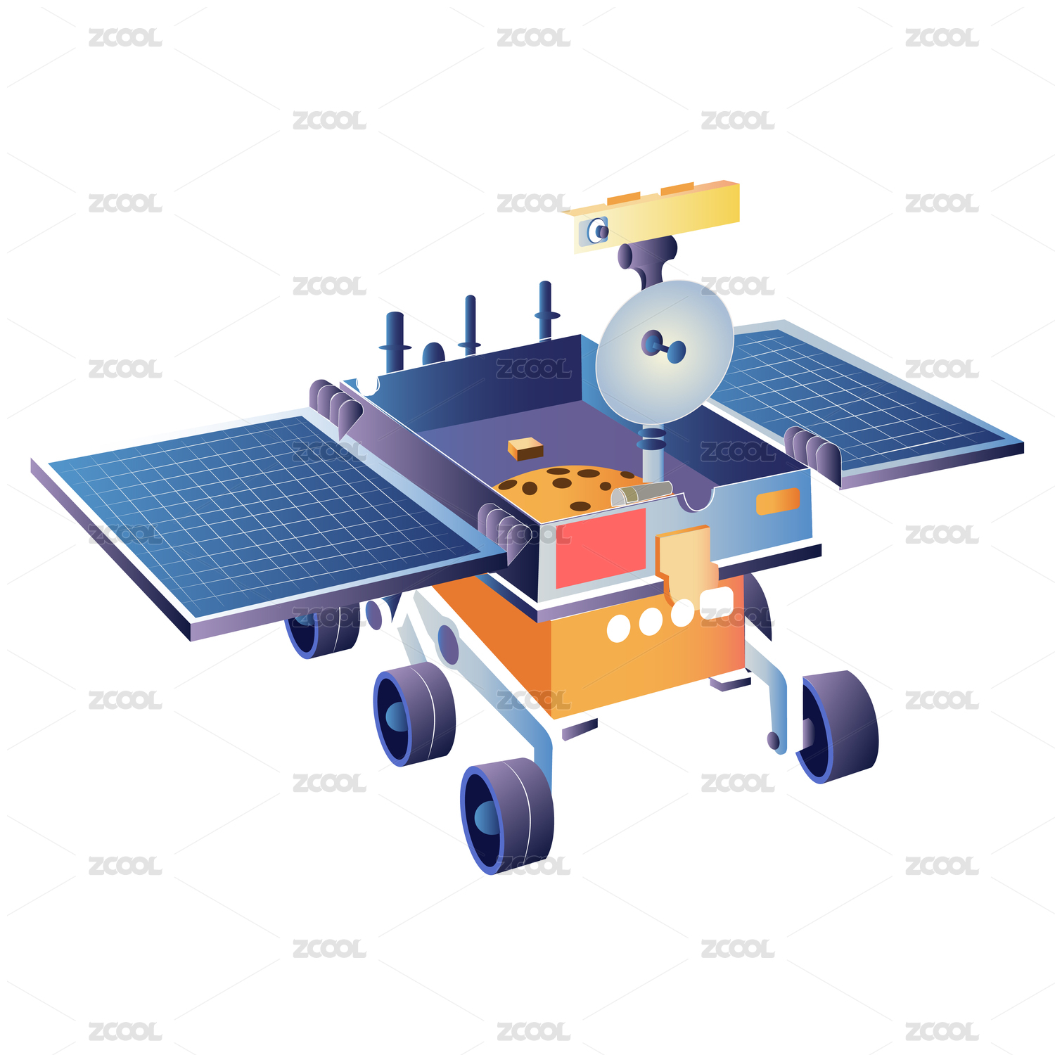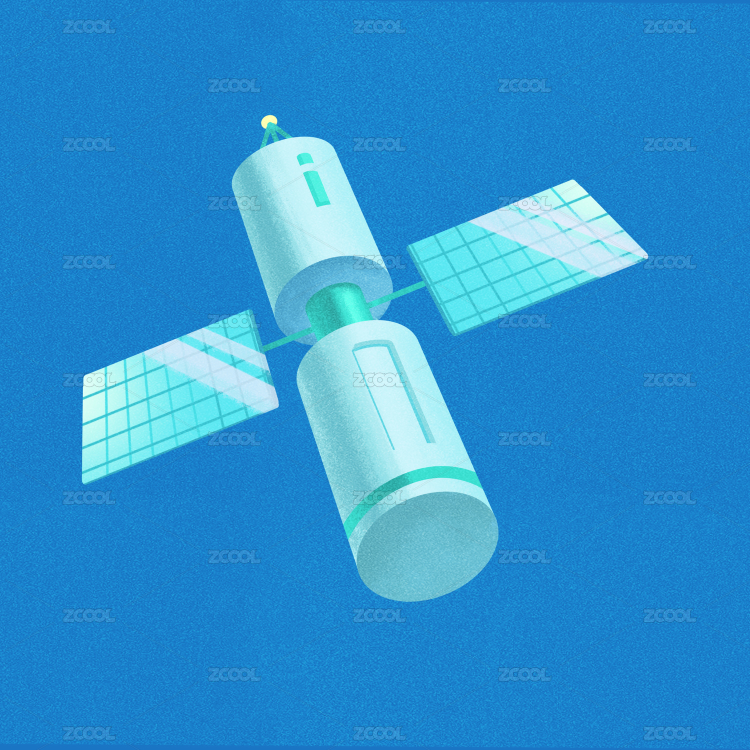 新国潮国风人造卫星无人航天器免扣矢量插画