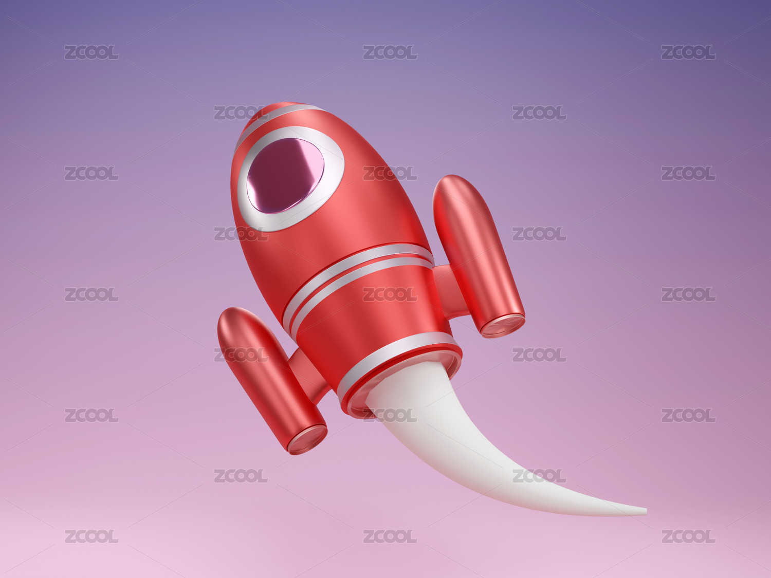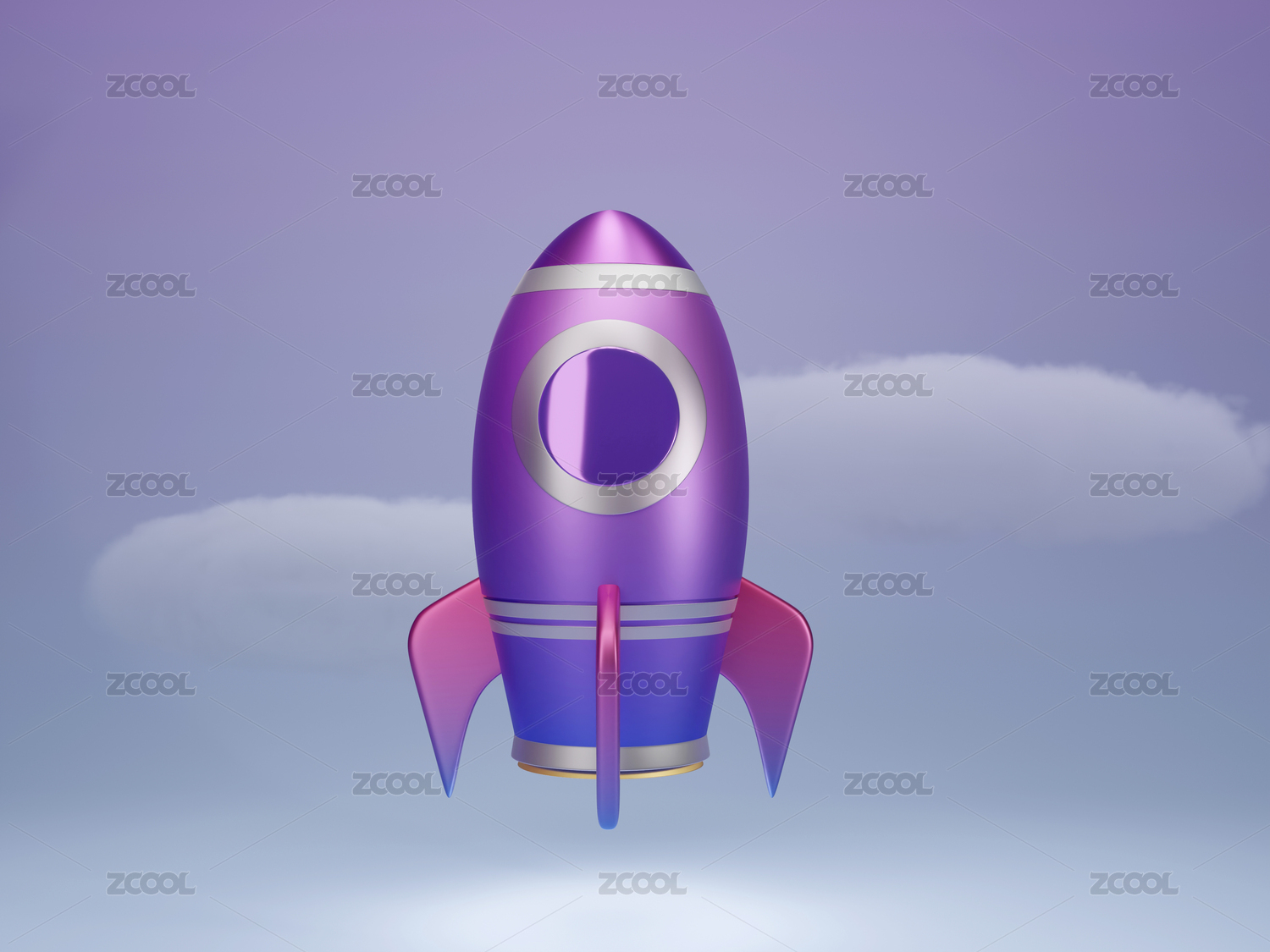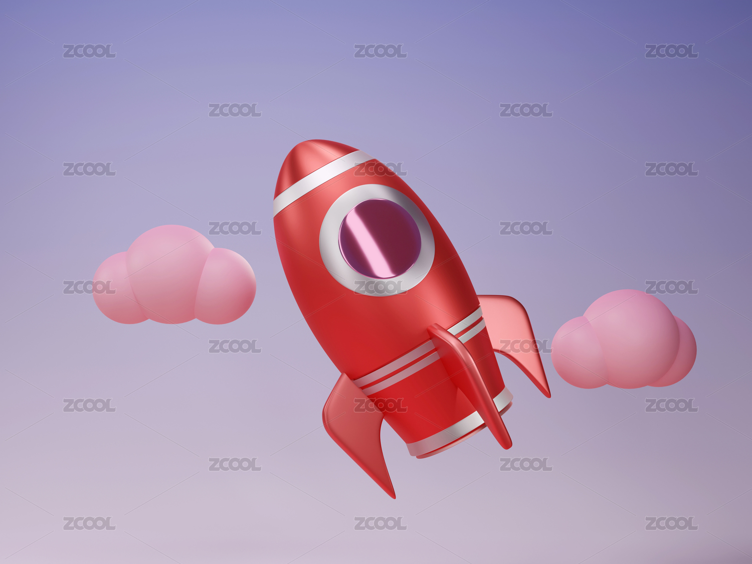 3D卡通紫色宇航火箭升空发射航天器
