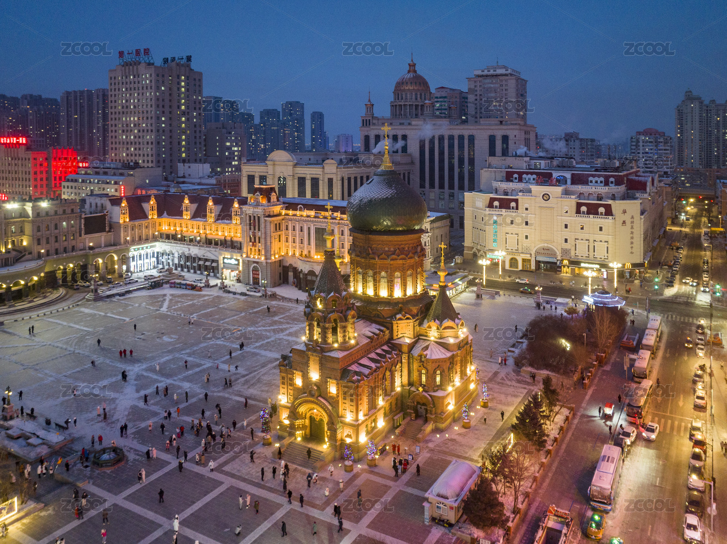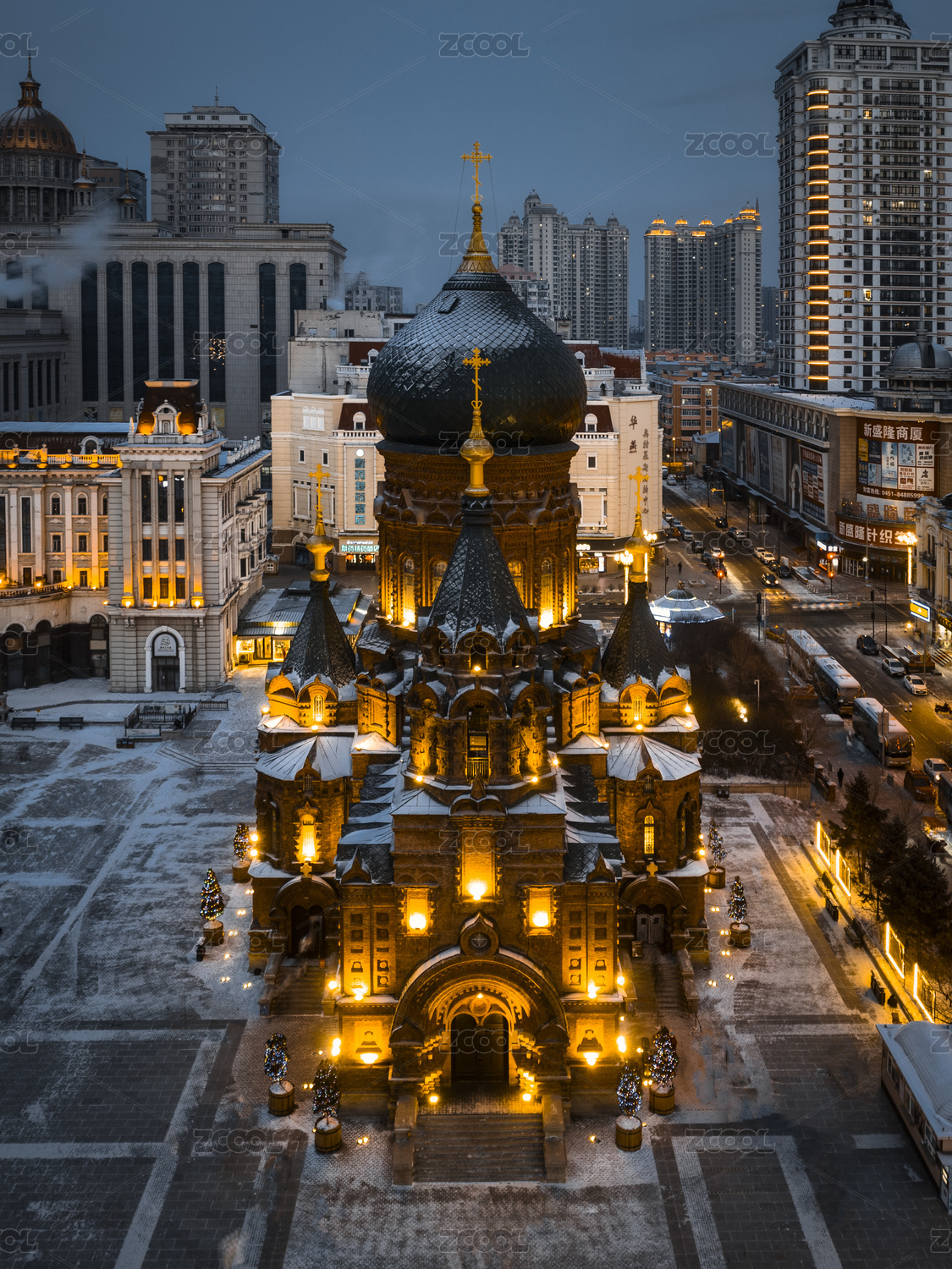 哈尔滨圣索菲亚教堂大教堂城市夜景旅游景点