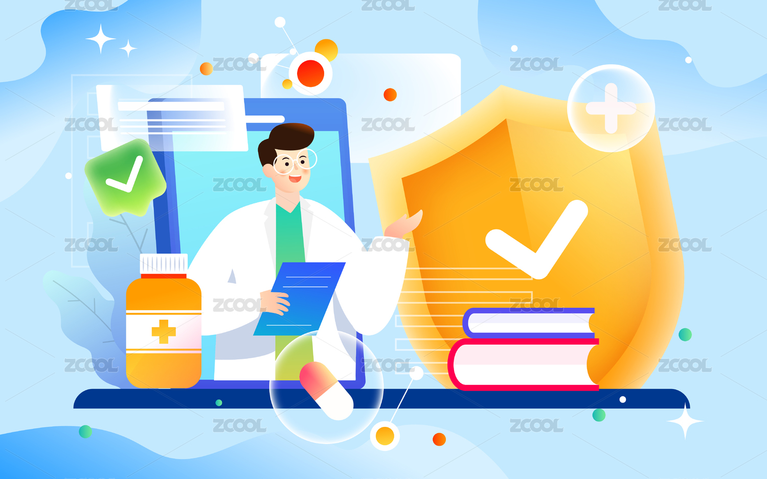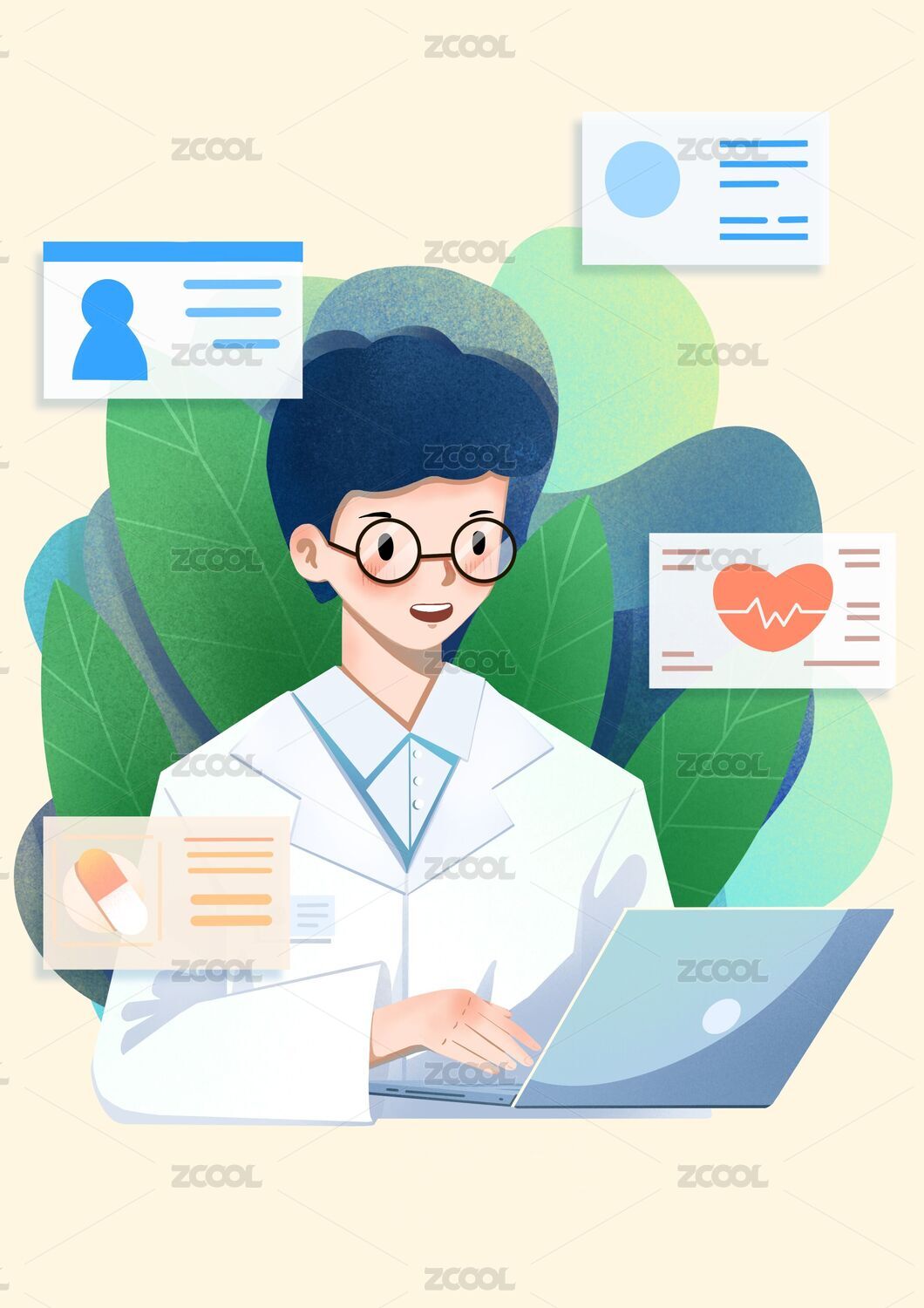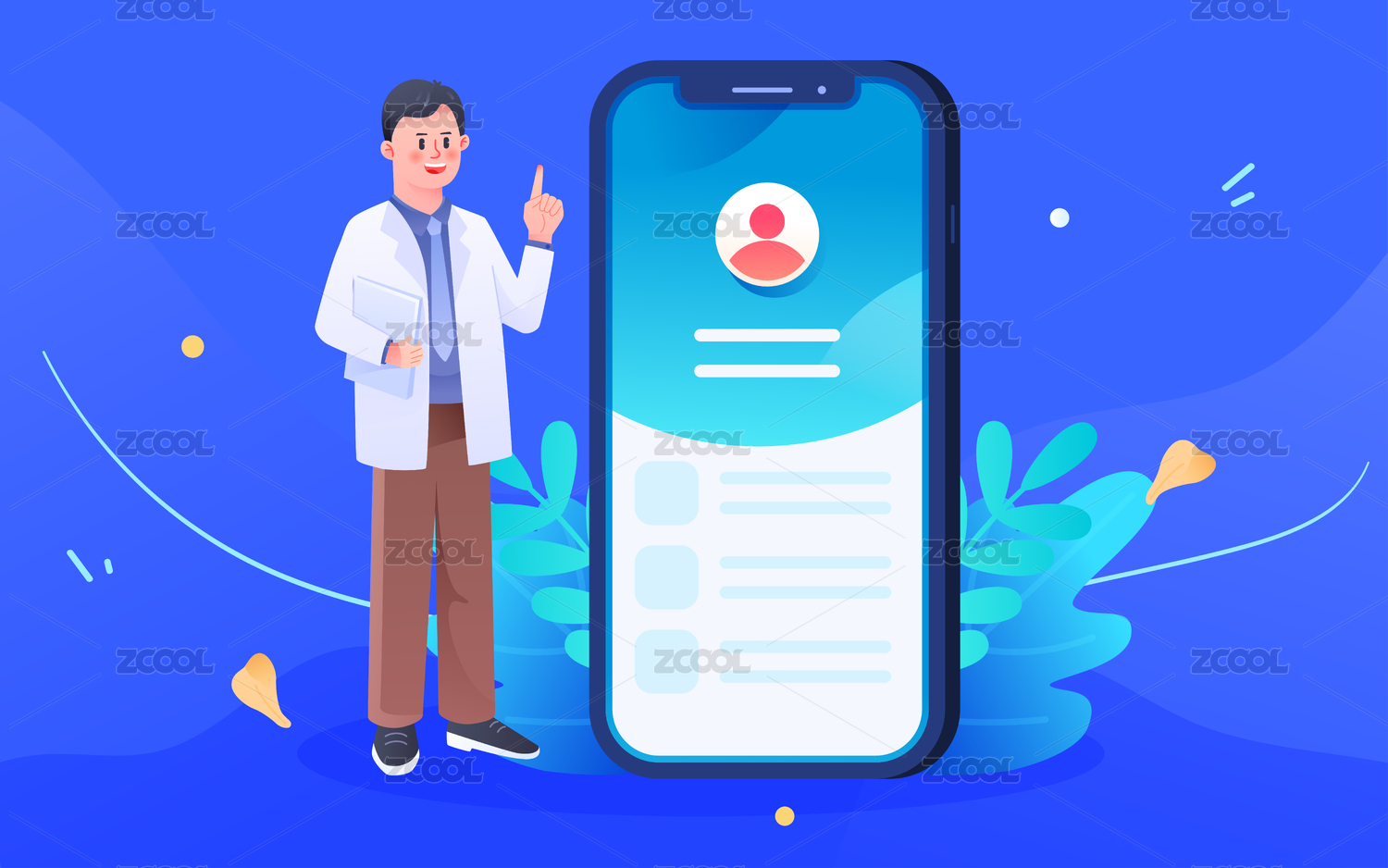 互联网医疗大数据AI可视化科技2.5D场景插画