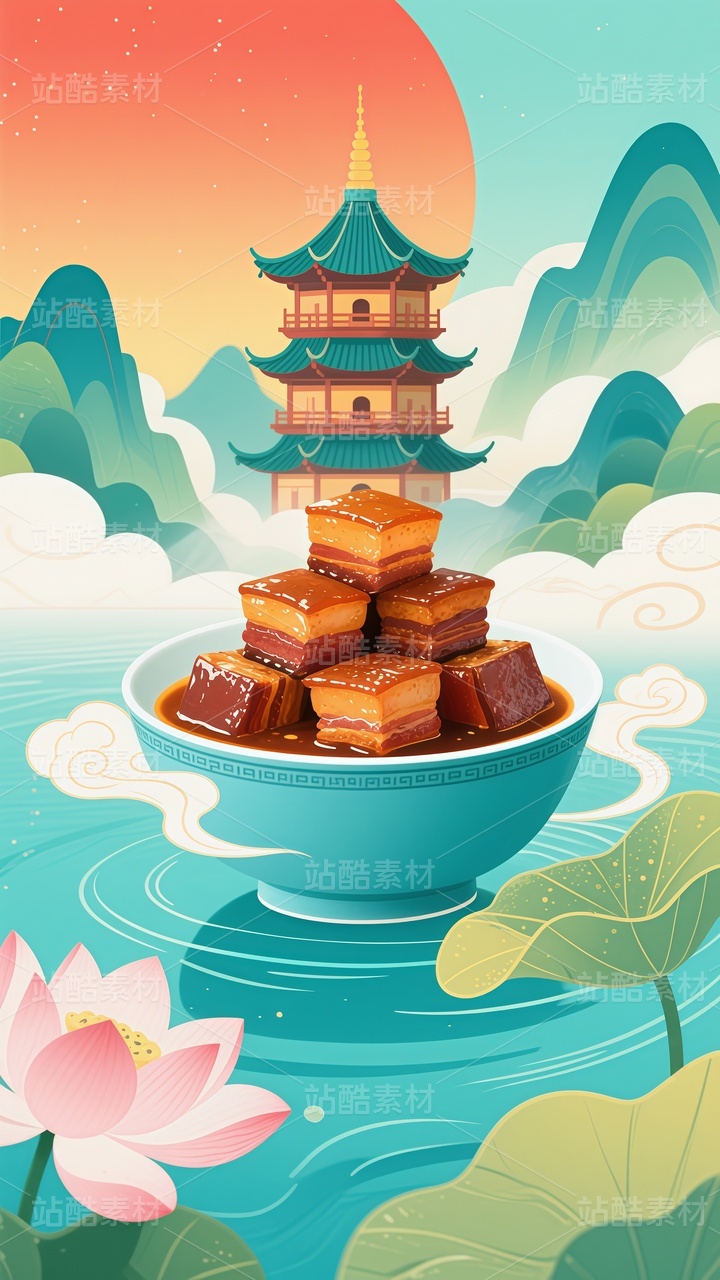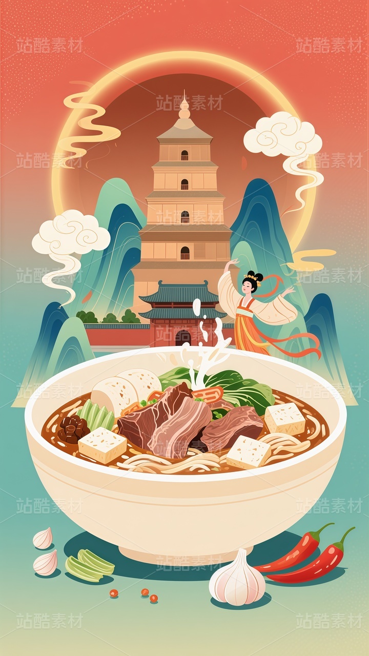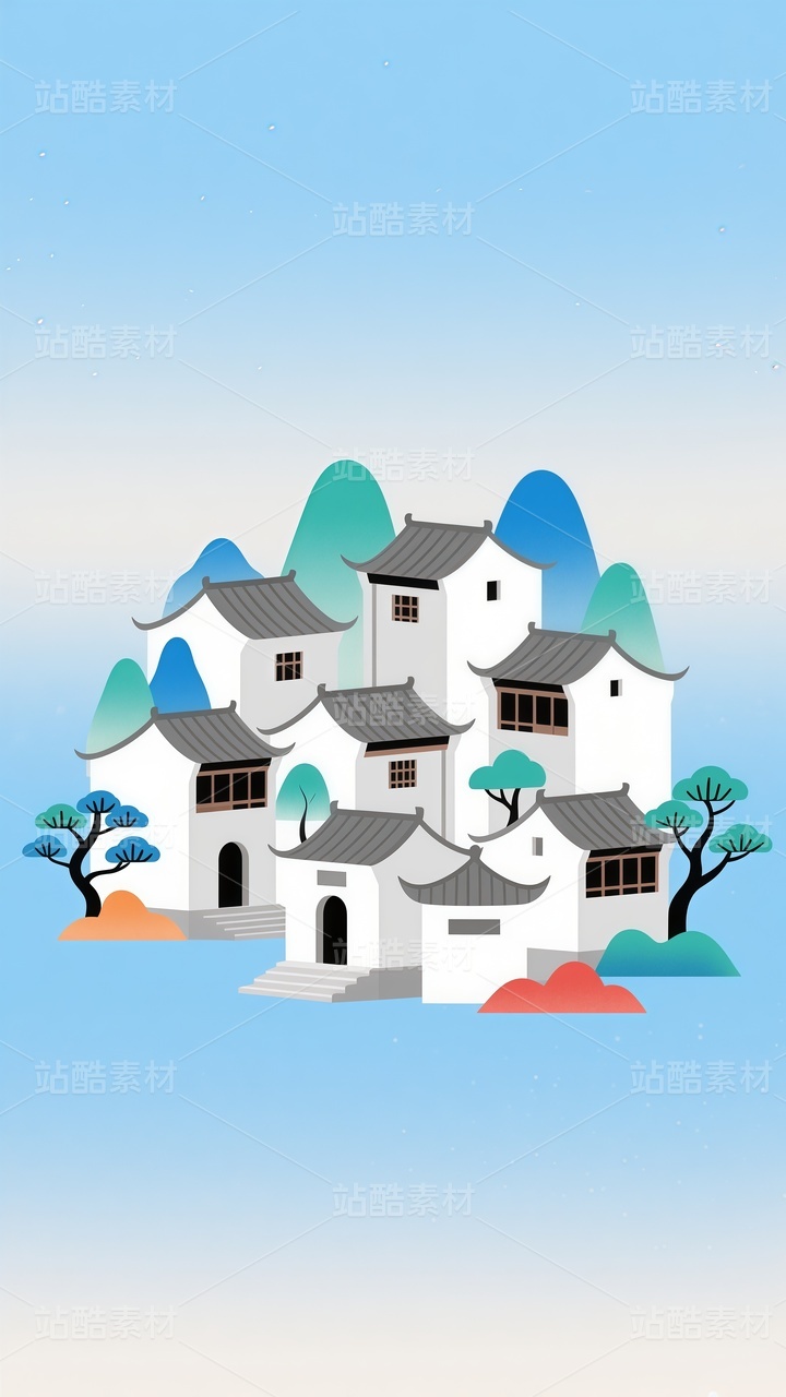 新中式中秋国庆节北京地标光晕剪影海报模板