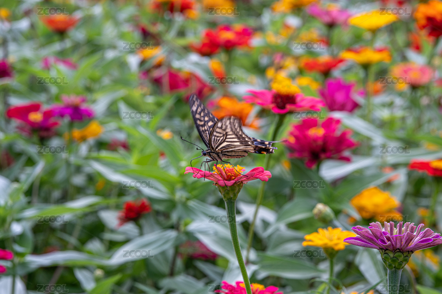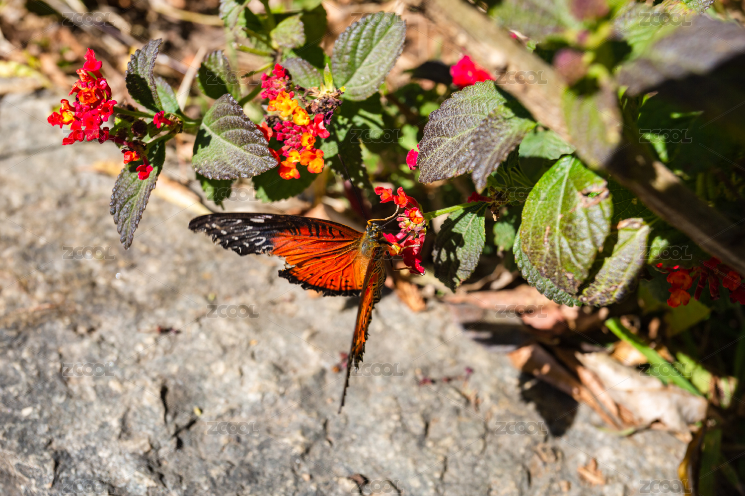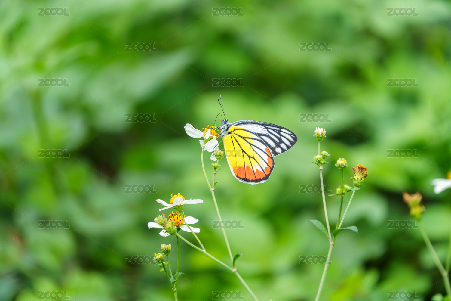 春天花园里彩色绣球鲜花彩蝶和竹篮花篮
