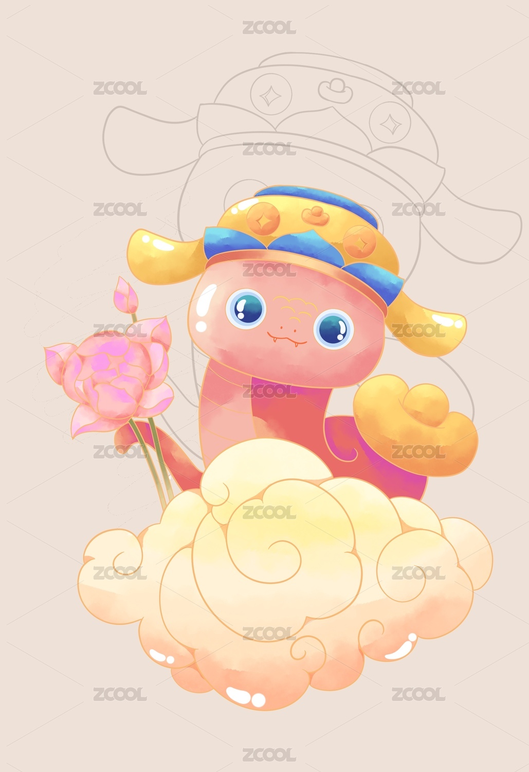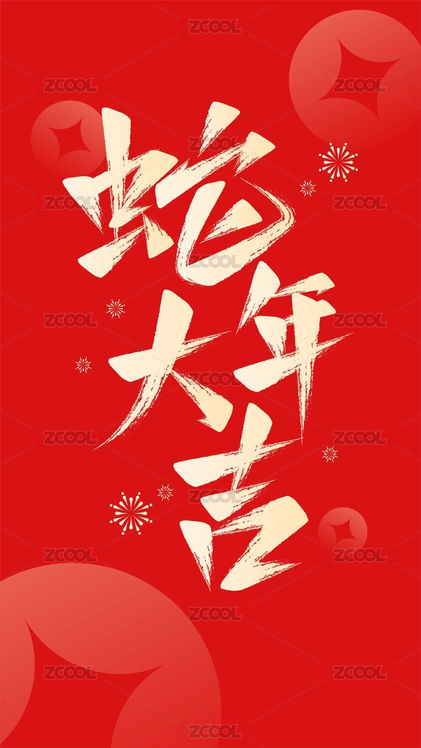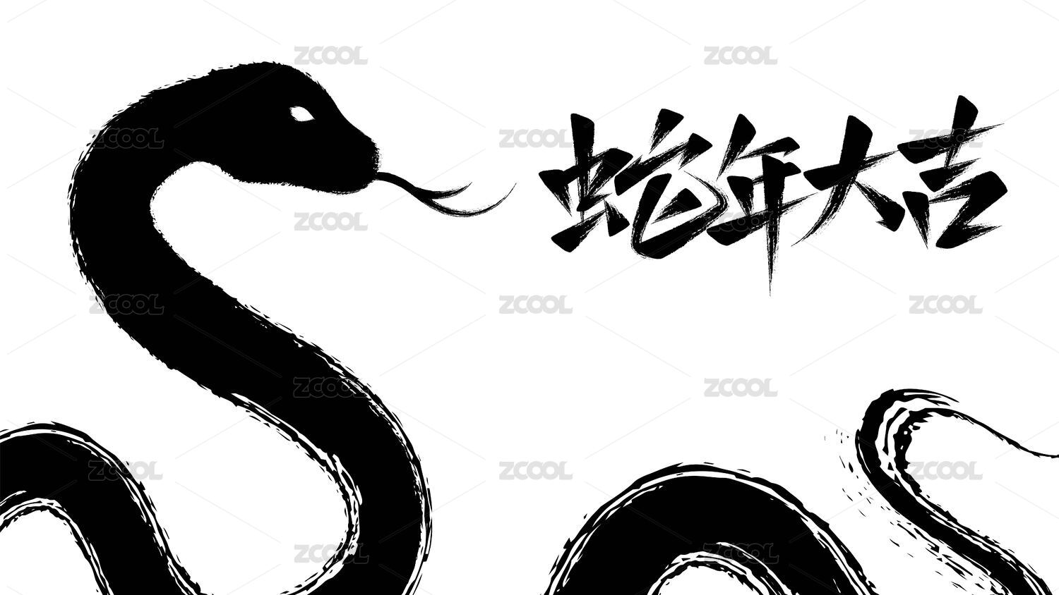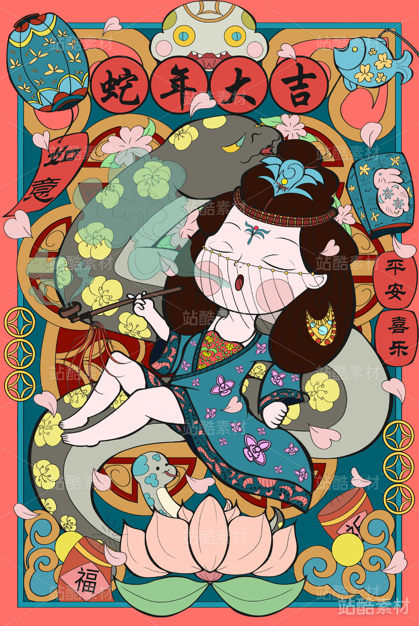蛇年大吉蛇来运转新年除夕正月剪纸插画海报