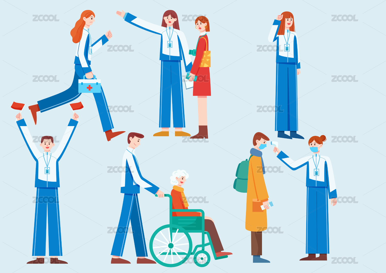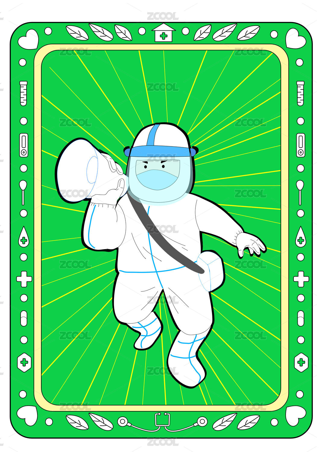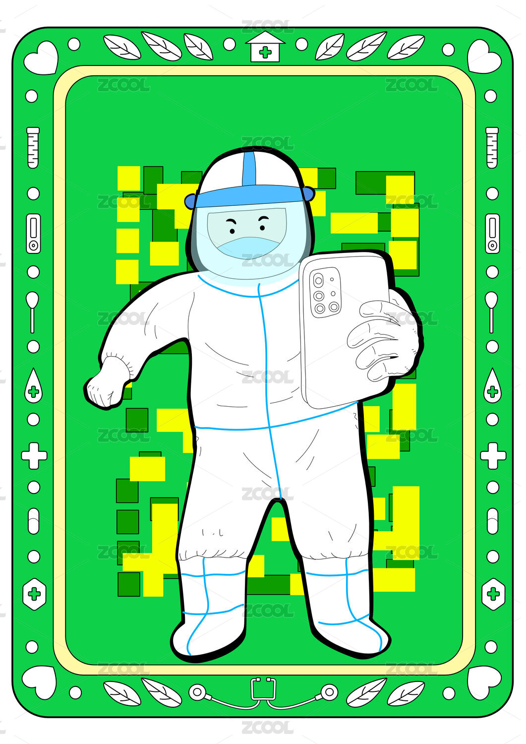 Q版疫情志愿者给市民扫描验核酸