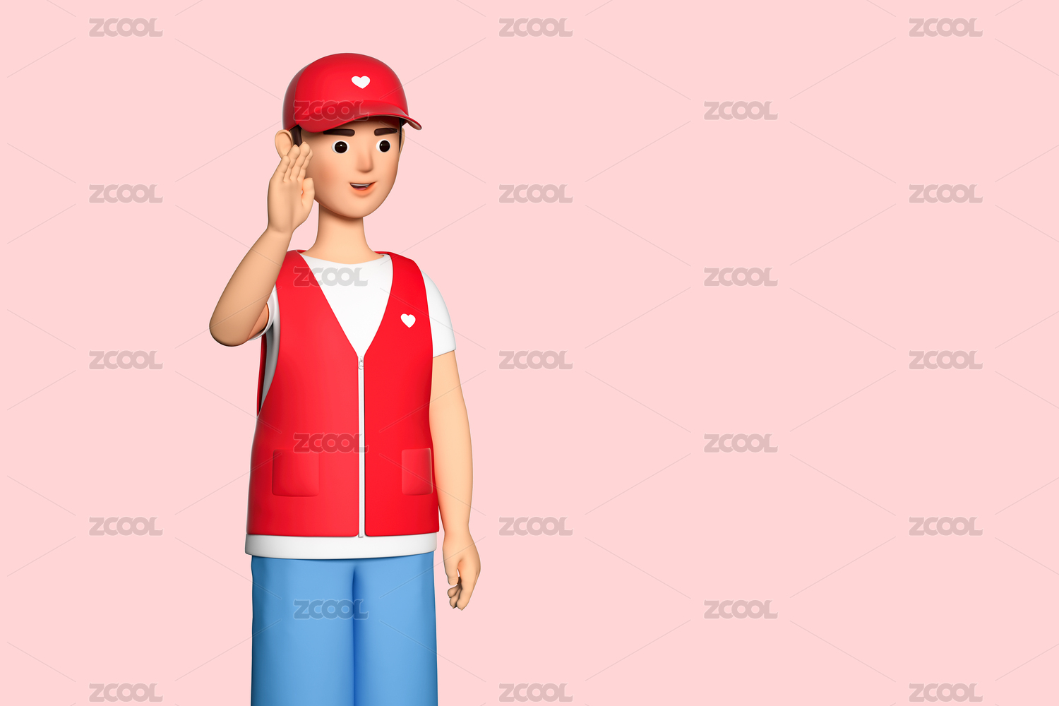 3D渲染挥手的志愿者