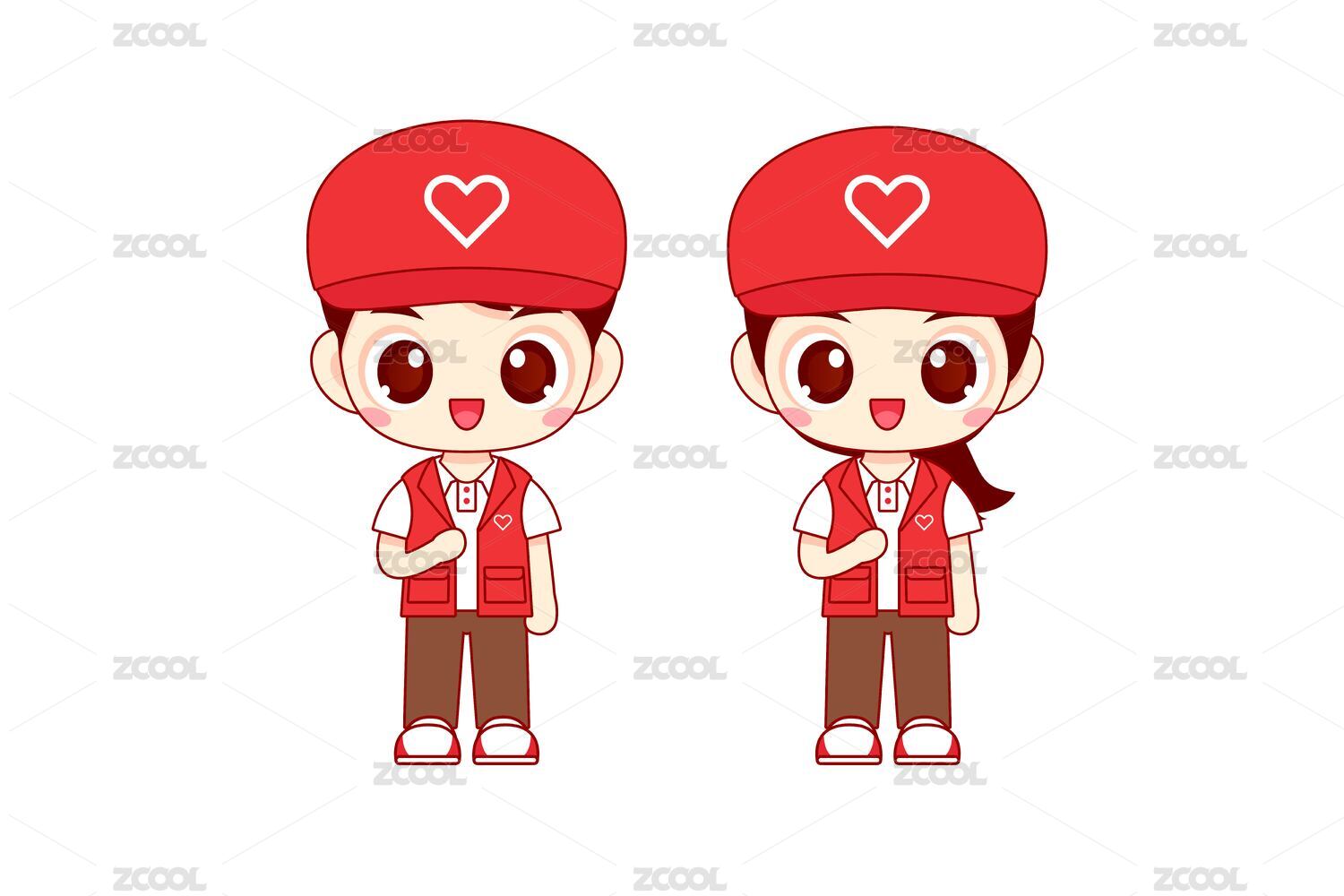 手绘爱心志愿者卡通人物