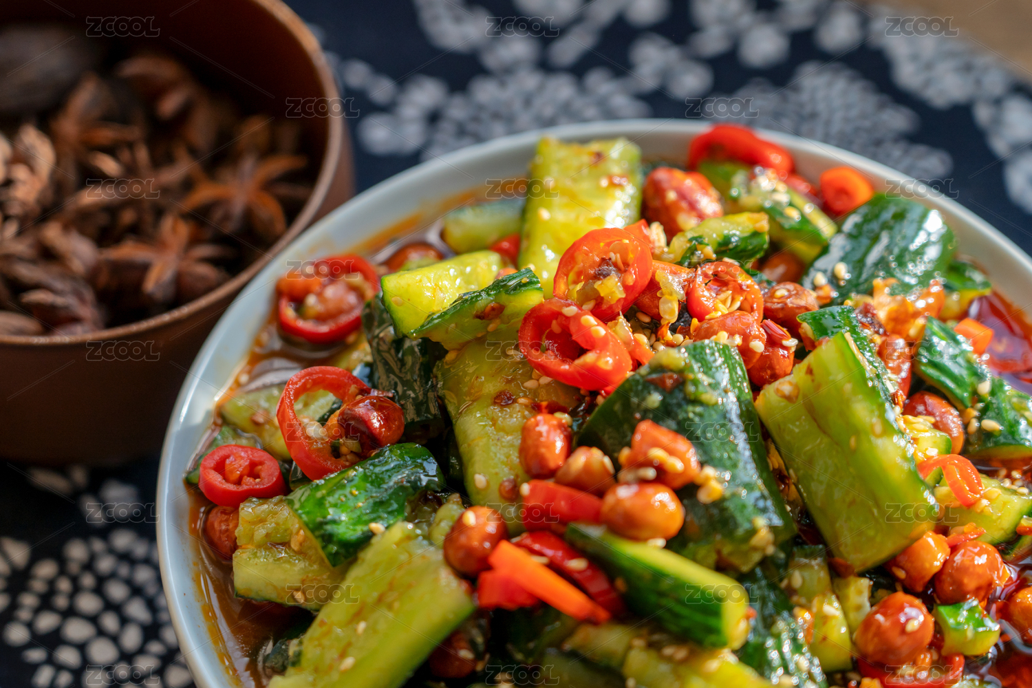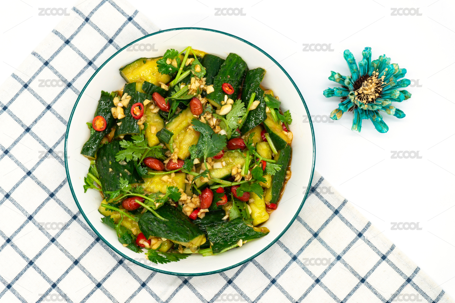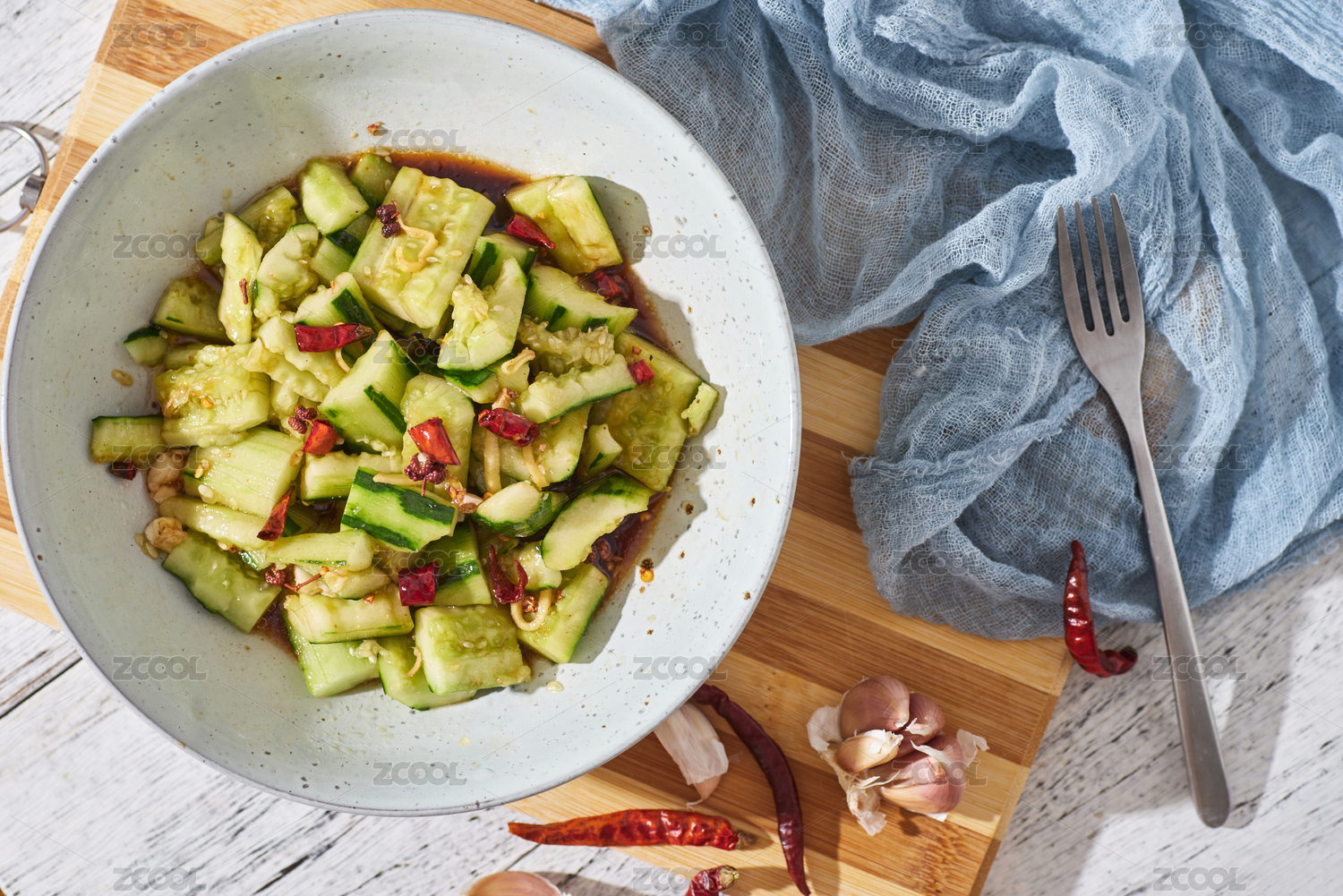 拍黄瓜 小吃 餐前菜 大蒜 香菜 明亮的 影棚 白色背景 蔬菜 维生素
