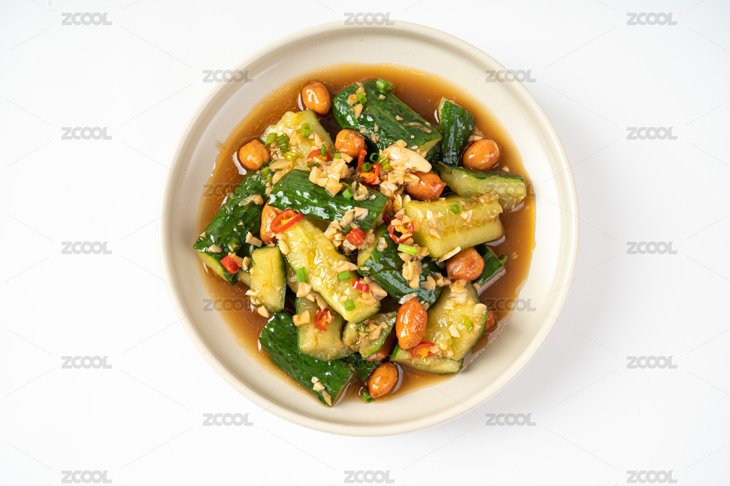 白背景一盘凉拌菜拍黄瓜