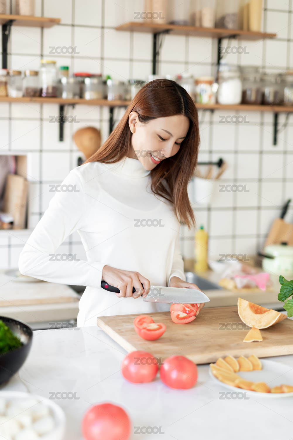 女孩厨房做饭