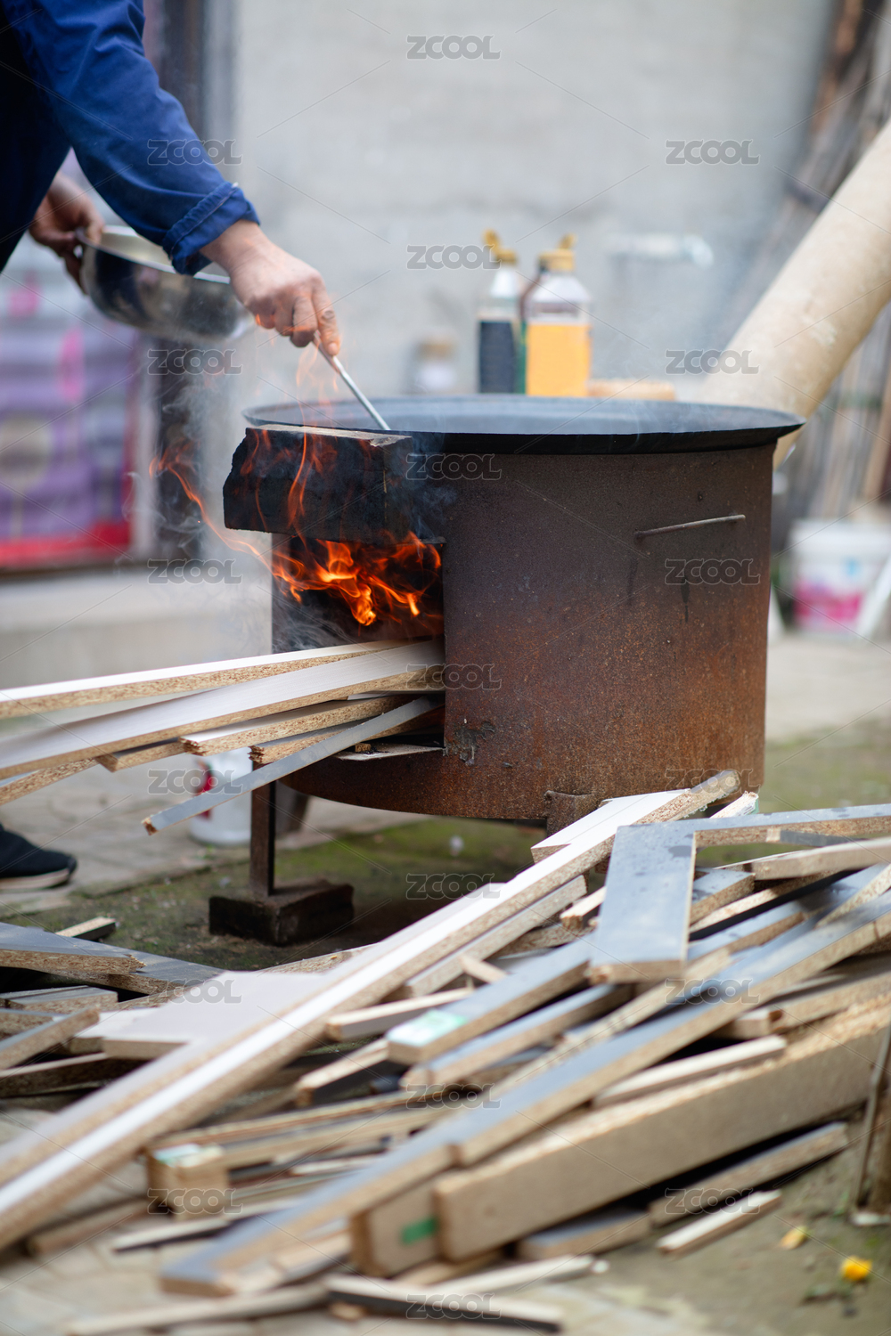 农村柴火地锅做饭
