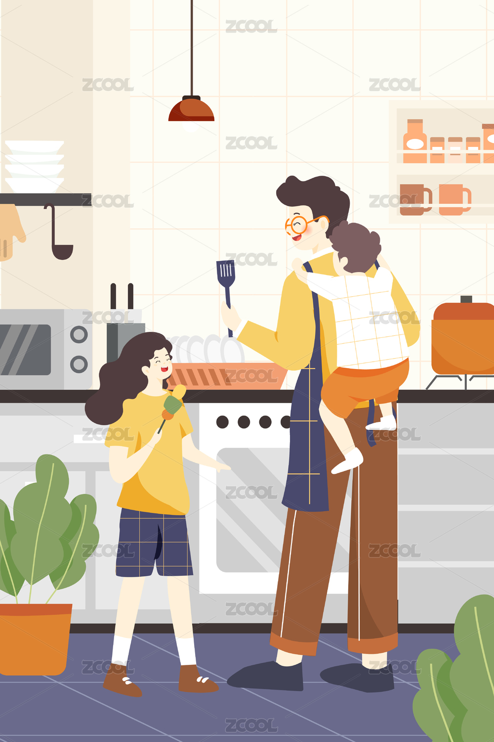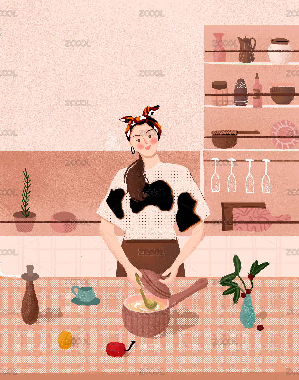 在家做饭场景插画