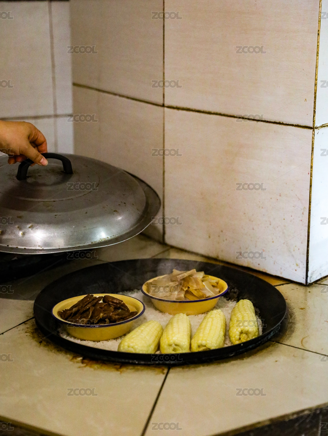 柴火灶做饭,锅里有美味的食物