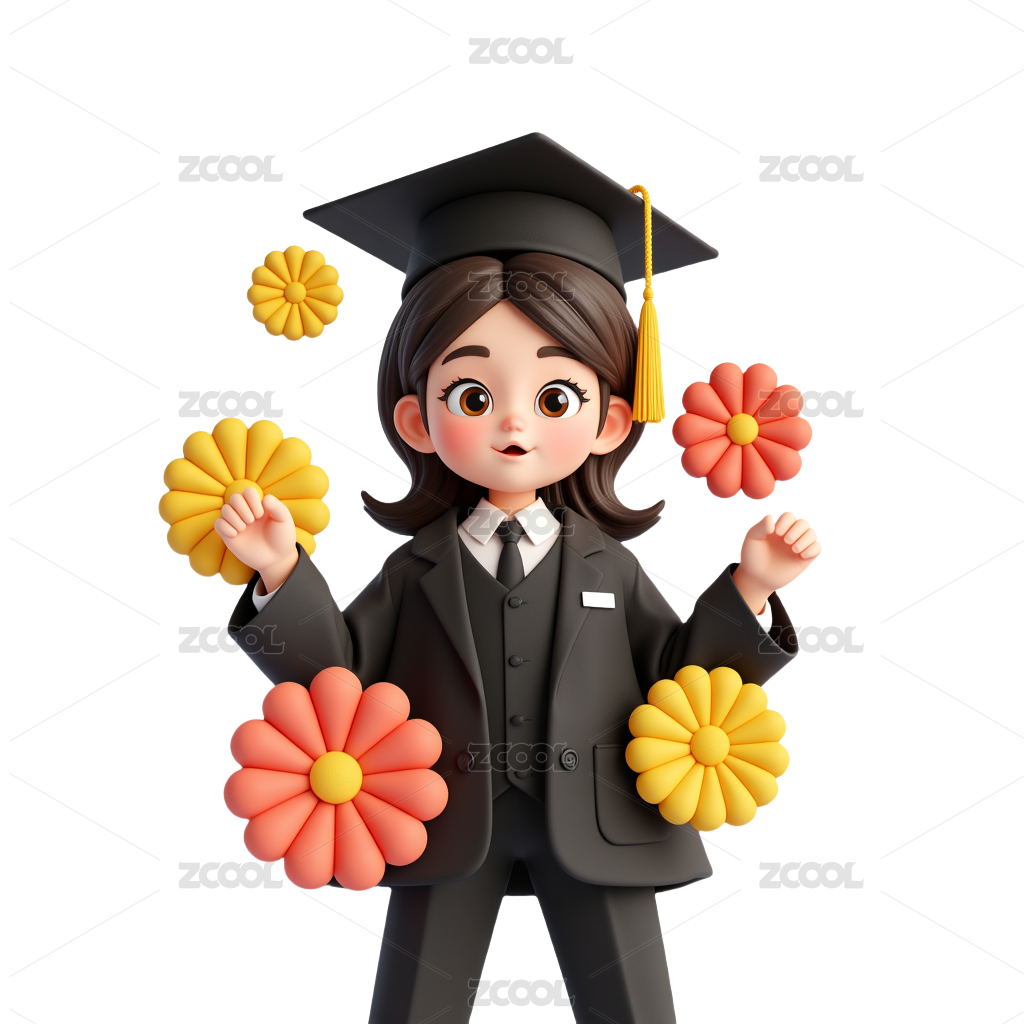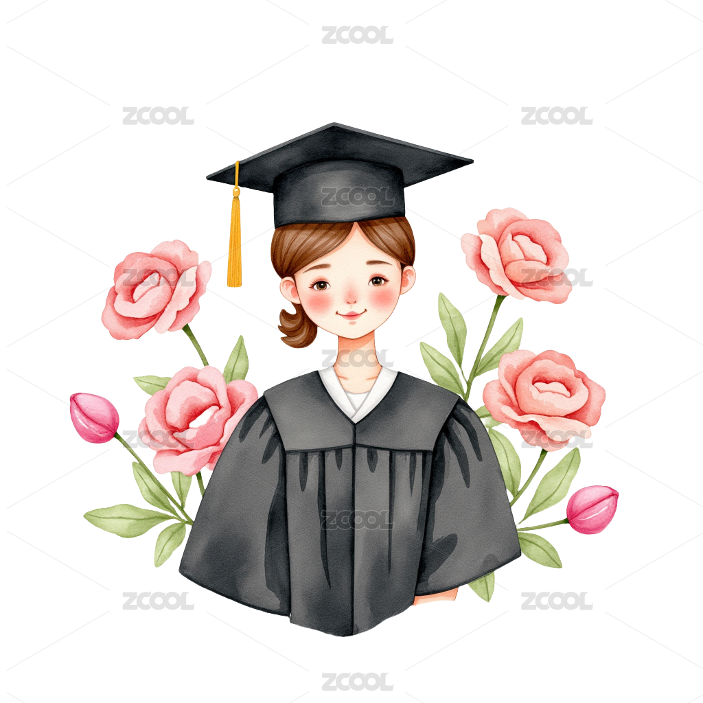 大学生穿学士服的毕业照