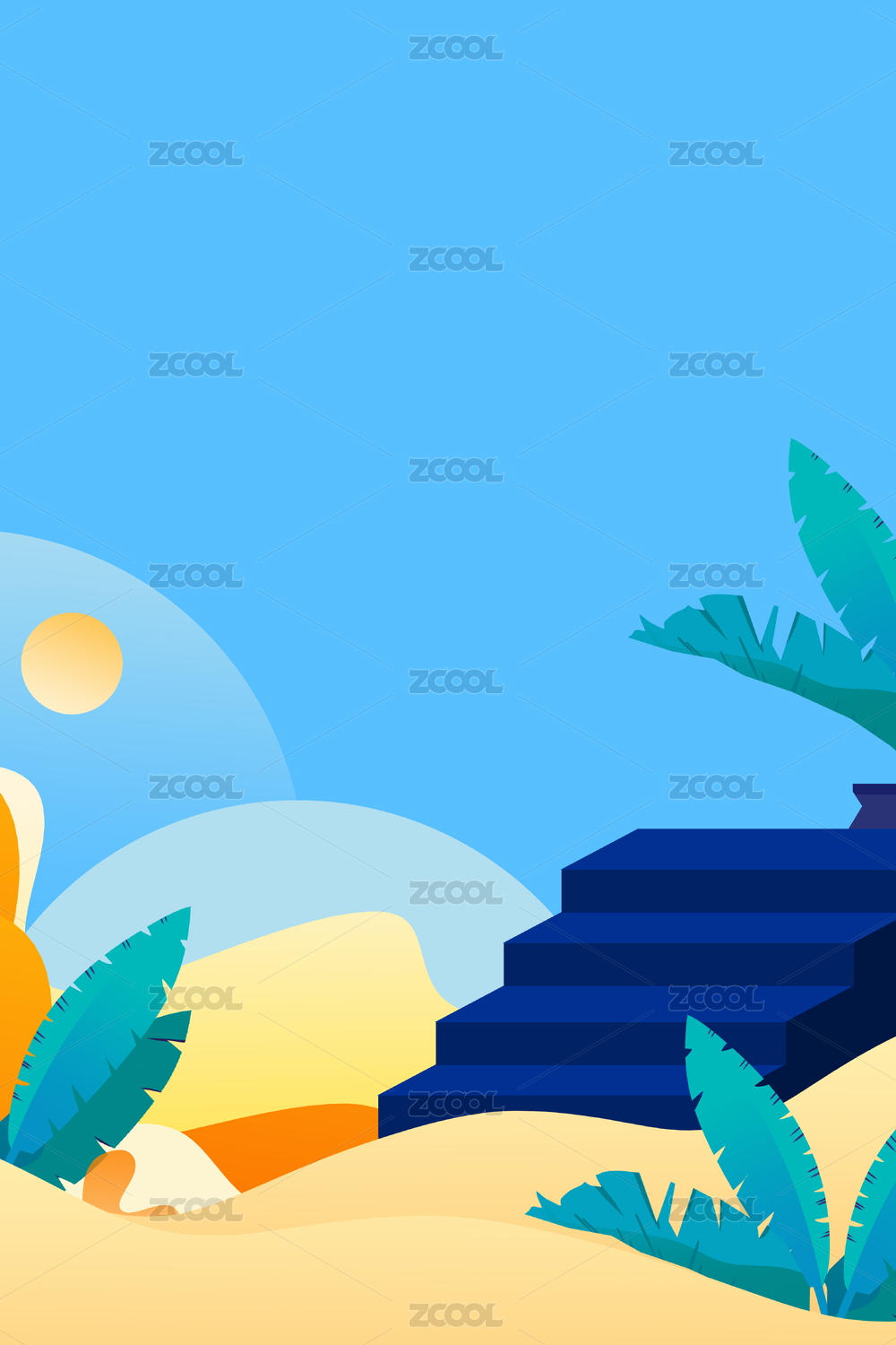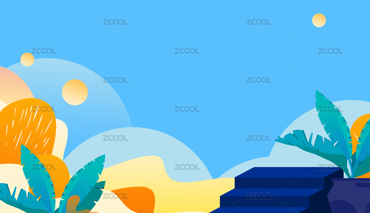 卡通手绘电商小清新蓝绿色背景
