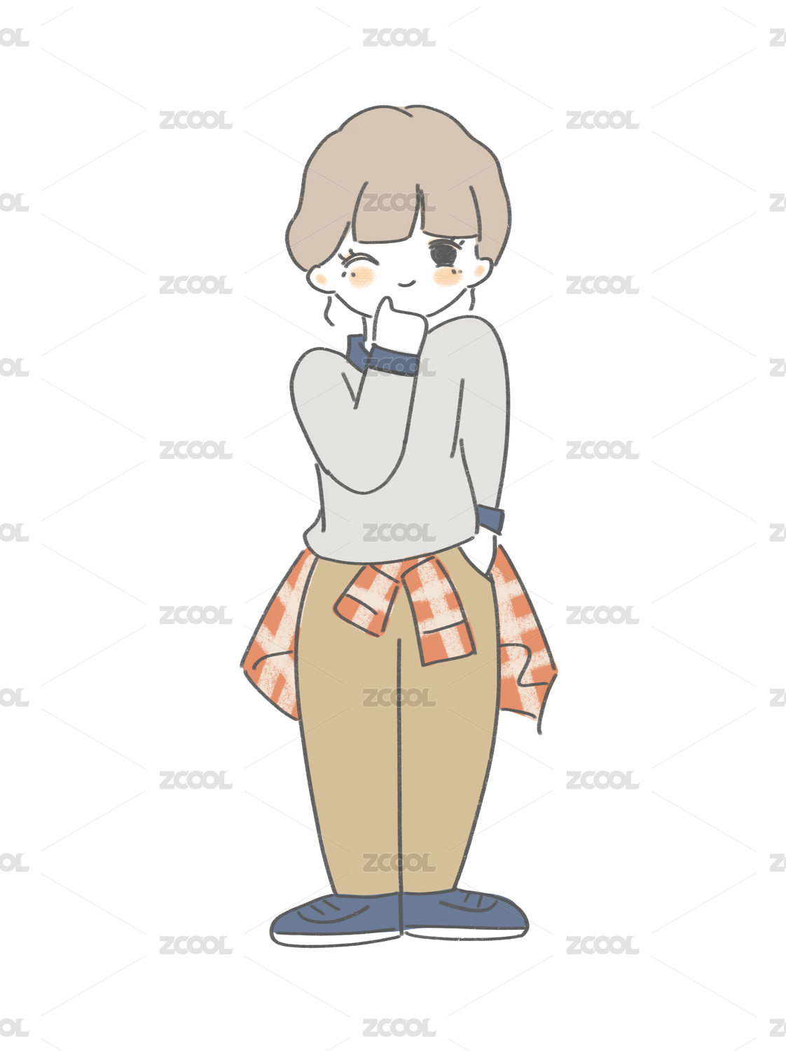 手绘插画时尚穿搭女孩调皮眨眼简约背景插画