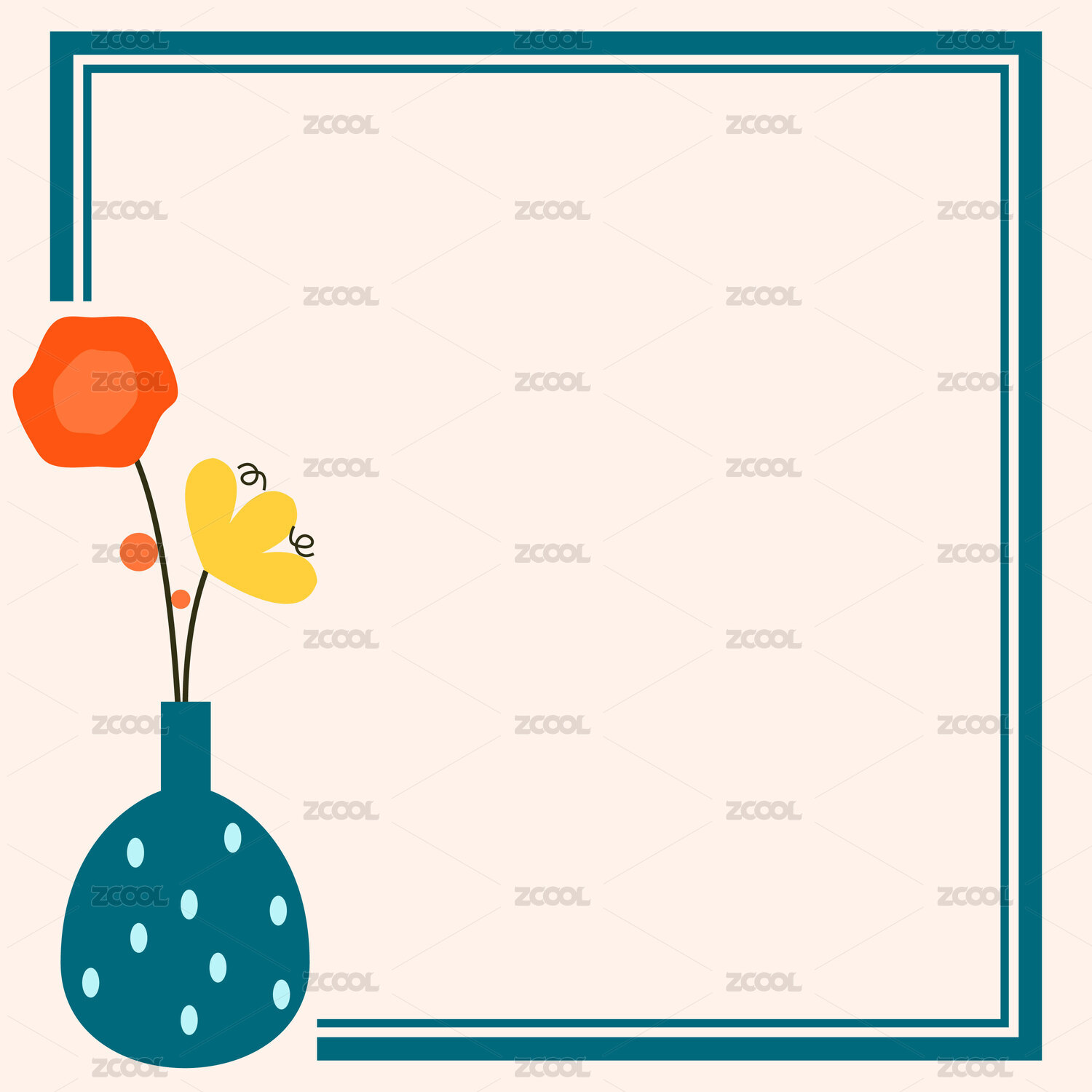 花瓶与花线框