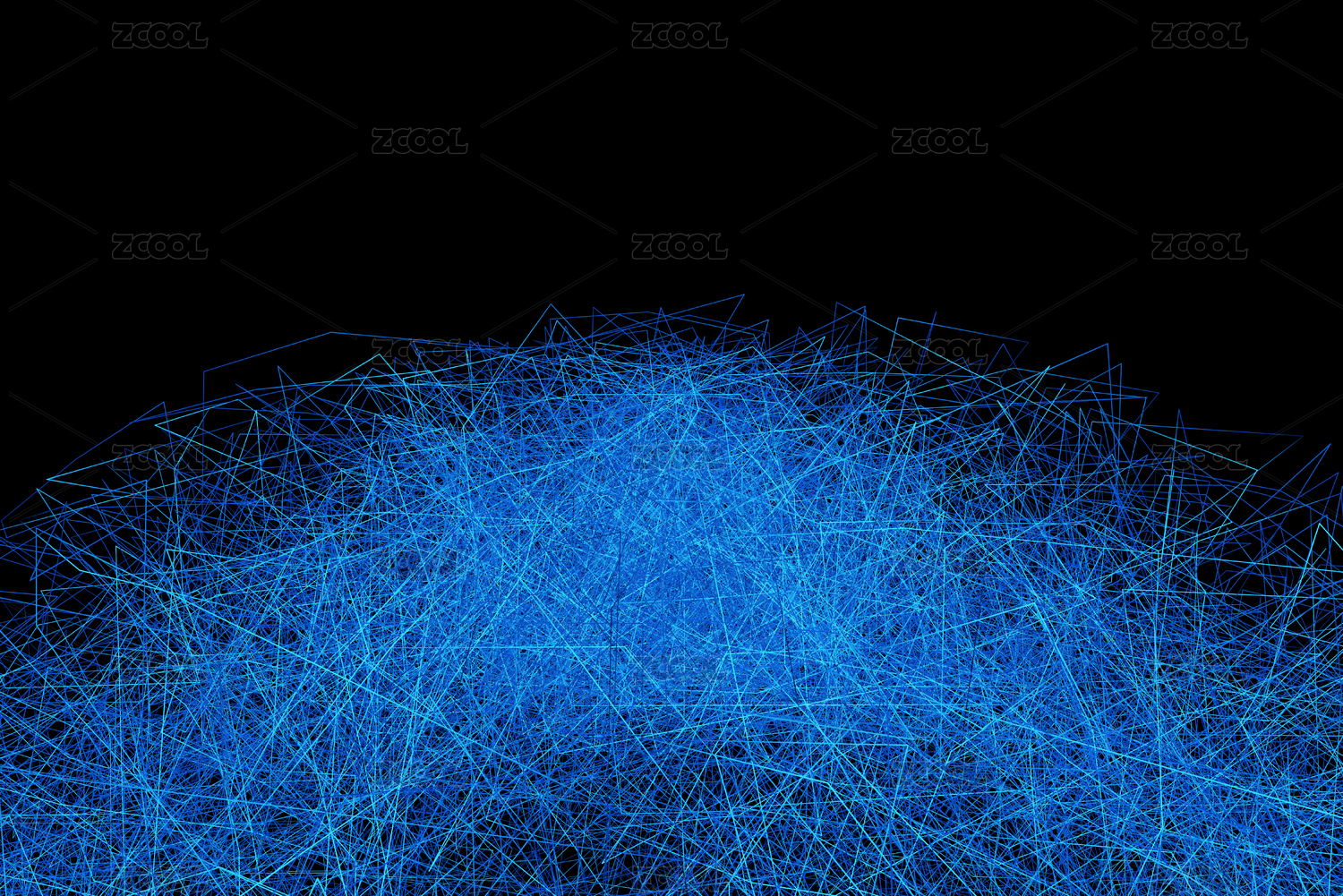 三维渲染粒子光线中的蓝色线框云图案