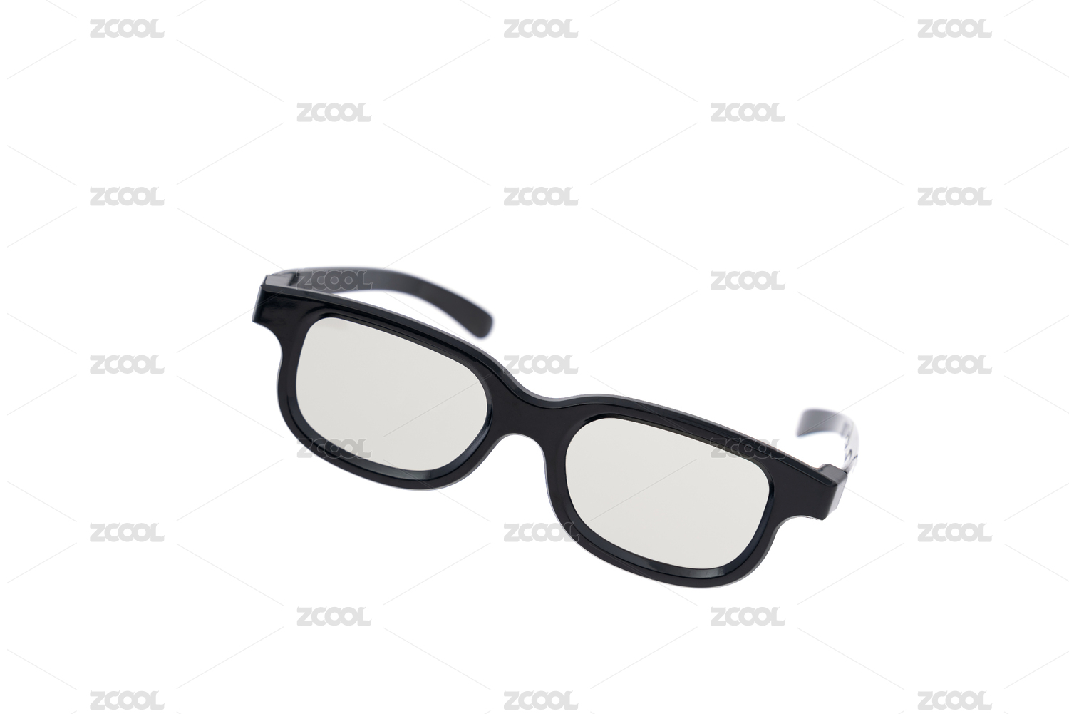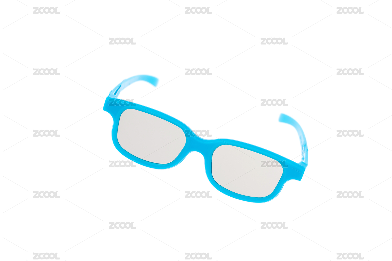 飘浮在白色背景中的蓝色儿童3D眼镜