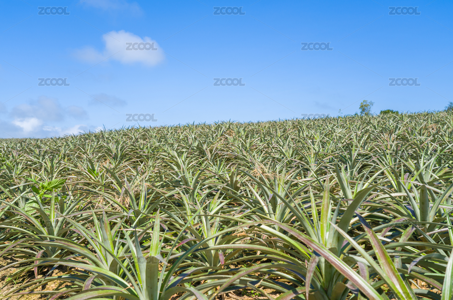 蓝天白云下的海南万宁乡村的凤梨种植园