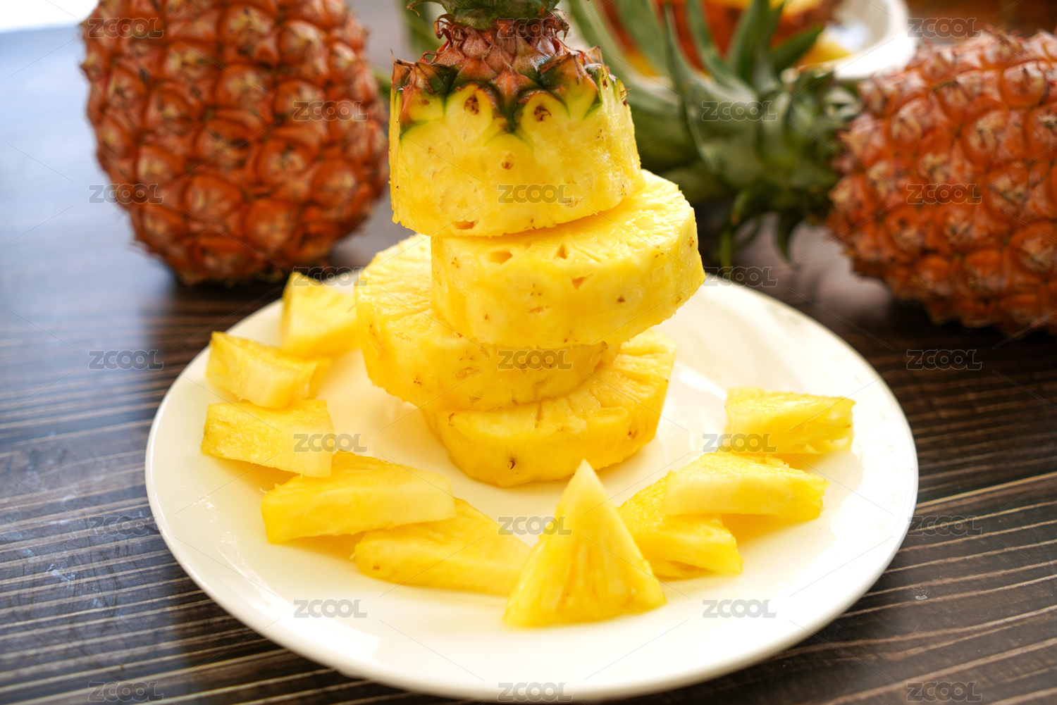 切开摆盘中的海南凤梨