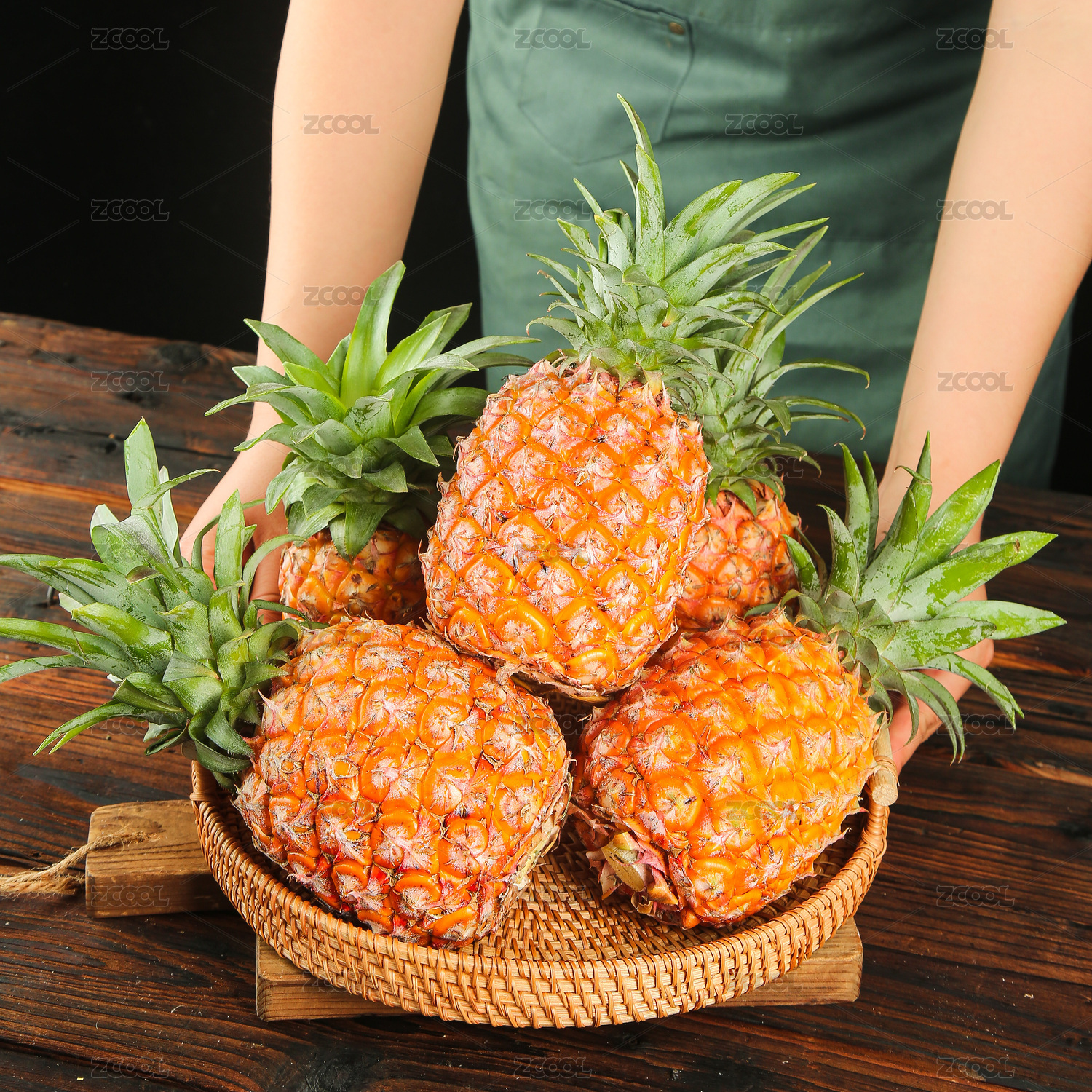 手上拿着半边海南凤梨